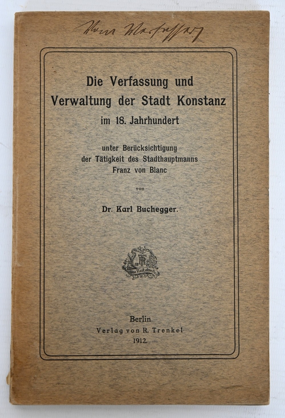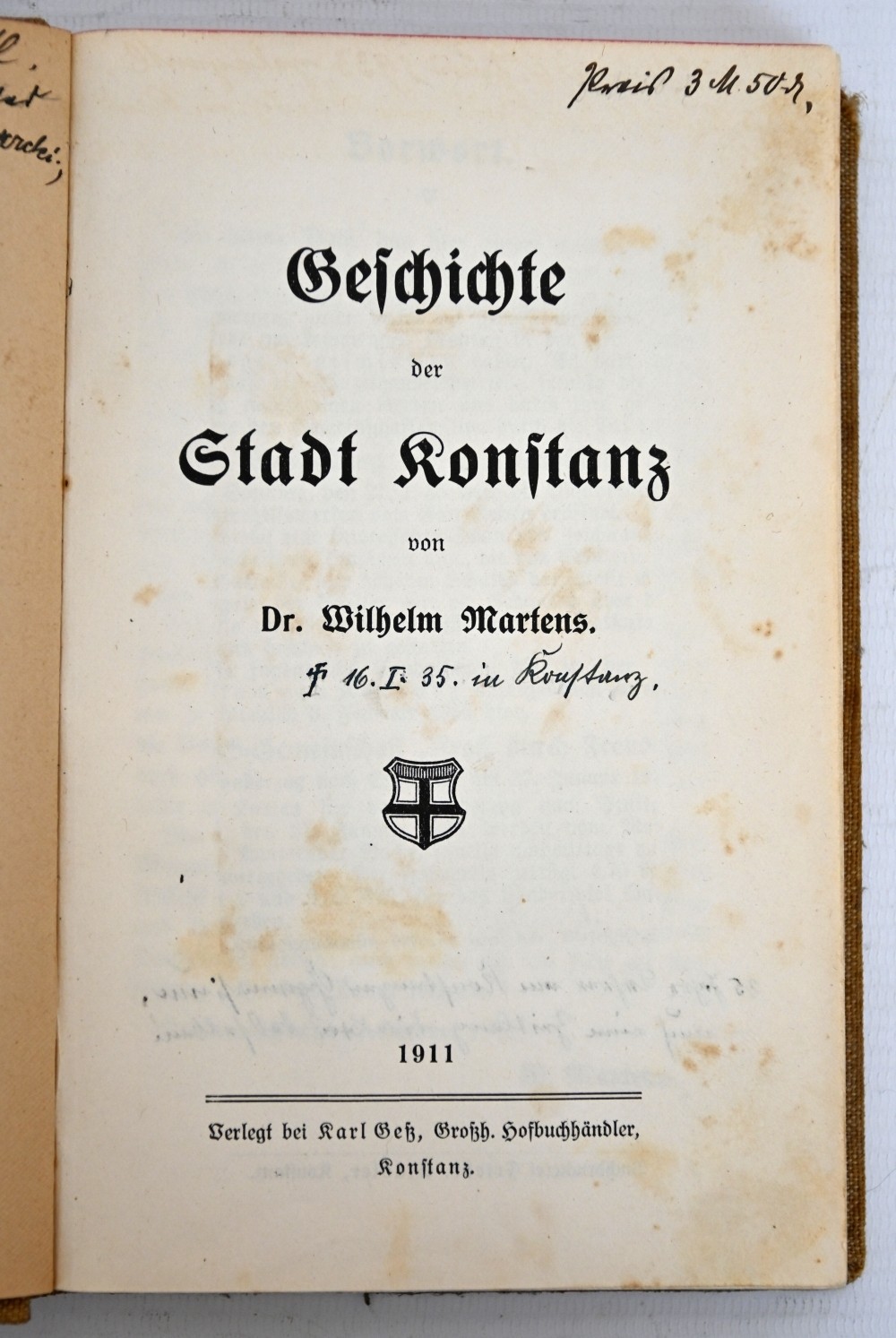 KONSTANZ/BADEN-KONVOLUT 9 Bände verschieden: Verfassung und Verwaltung im 18. Jh., Einwohnerbuch 1936, Ortsnamen Hzgtm. Baden, Die Stadt Konstanz, der Konstanzer Sturm 1548, Geschichte der Stadt, Bau und Verkehrsgeschichte...