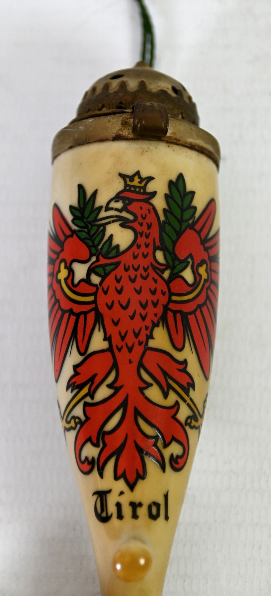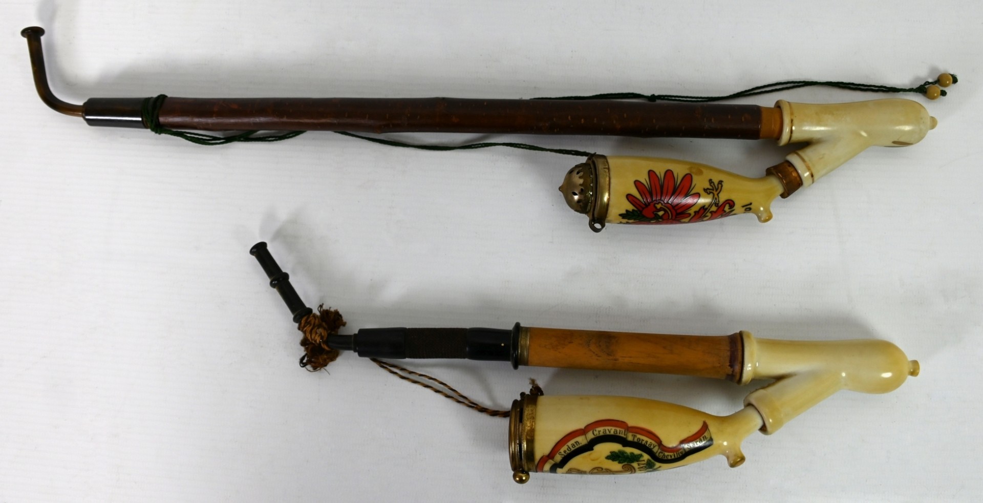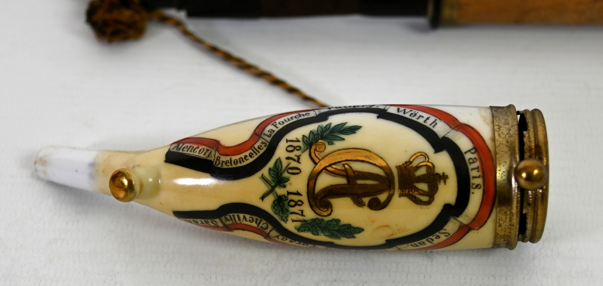 RESERVISTENPFEIFE eines ehemaligen Angehörigen des 5. Thüringischen Infanterie-Regiments ''Großherzog von Sachsen'' Nr. 94 zur Erinnerung an den deutsch-französischen Krieg 1870/1871, Porzellan mit Porzellanmalerei. Dazu Tiroler Souvenirpfeife