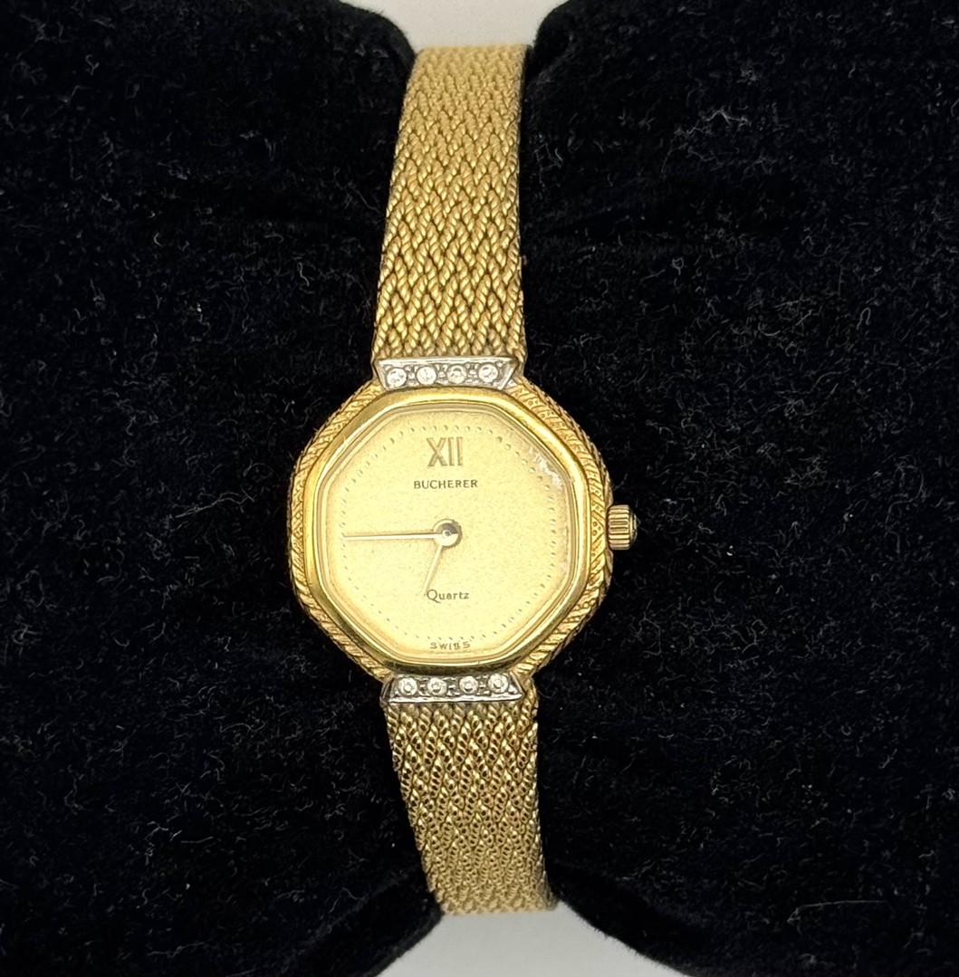 Los 326 - Bucherer Damenarmbanduhr, Quarz, Stainless Steel. Feine, vergoldete Uhr mit leichten Abnutzungsspuren am Armband. Funktion nicht geprüft
