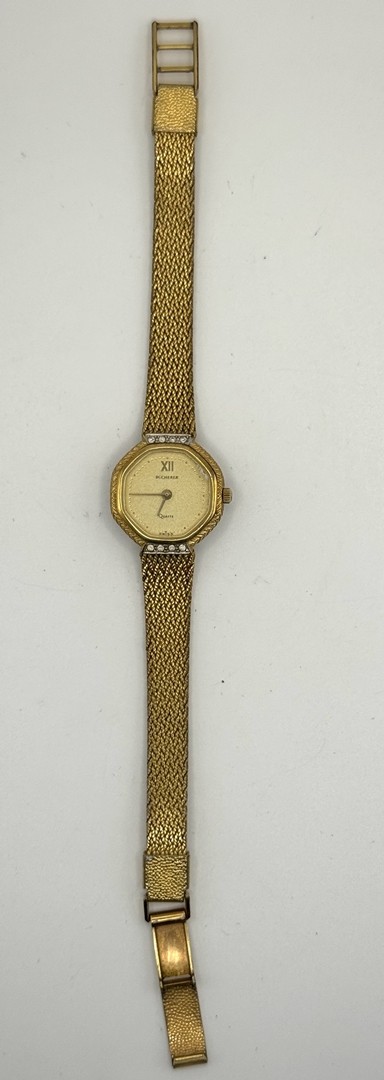 Bucherer Damenarmbanduhr, Quarz, Stainless Steel. Feine, vergoldete Uhr mit leichten Abnutzungsspuren am Armband. Funktion nicht geprüft