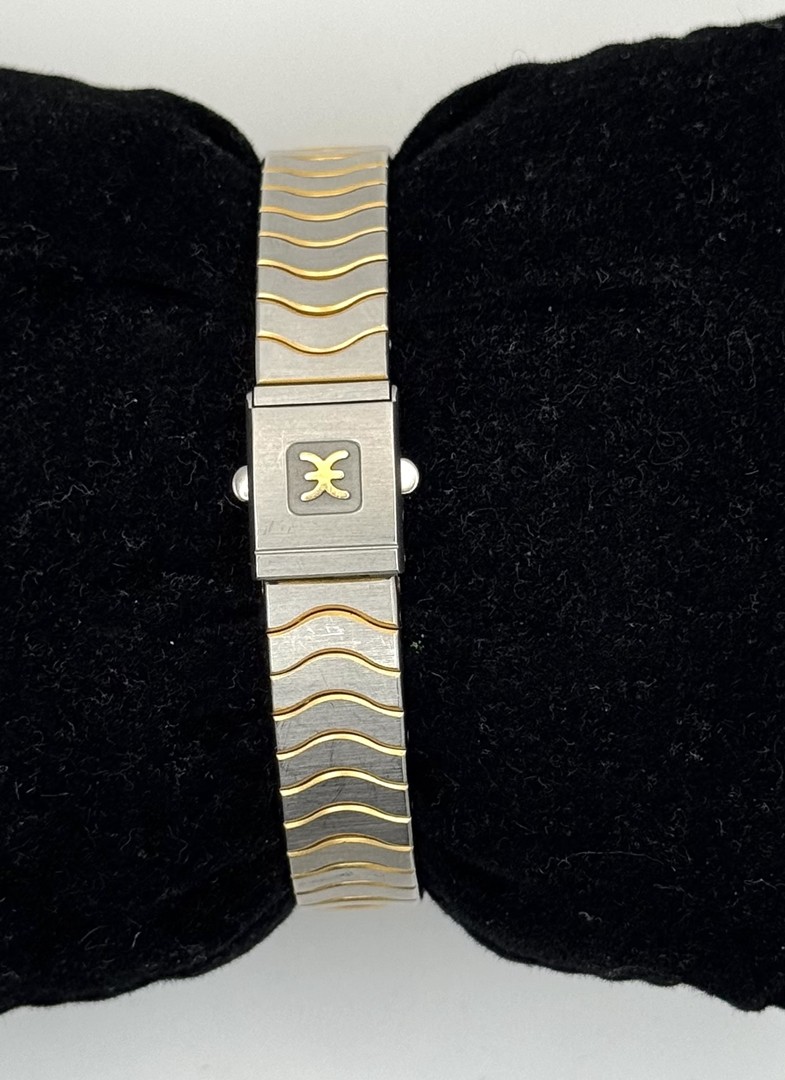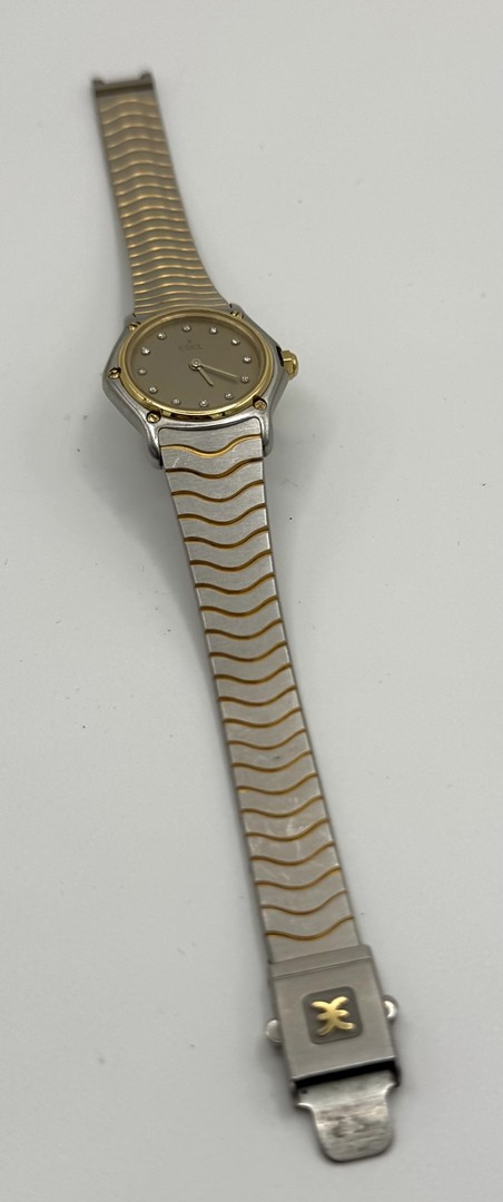 Los 328 - Ebel Damenarmbanduhr, Classic Wave, Stainless Steel. Bicolor, Gehäuse und Elemente des Armbands vergoldet. Ziffernblatt mit Modesteinen ausgeführt. Funktion nicht geprüft.
