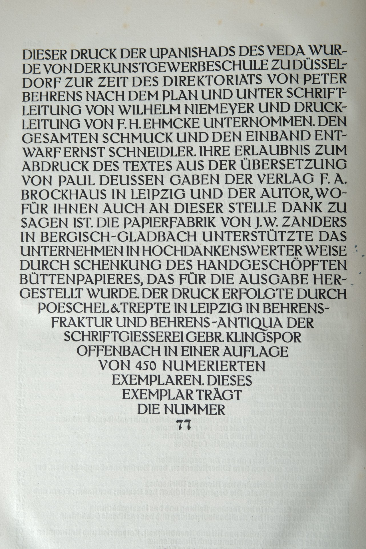 Diederichs, Eugen (Hrsg.) "Die Grundworte des Indischen Monismus", aus den Upanishads des Veda, 1914.