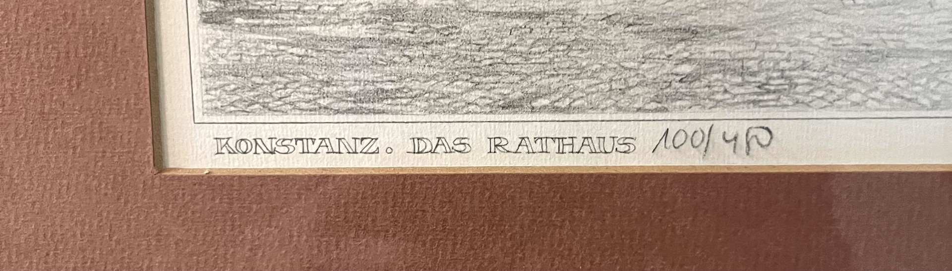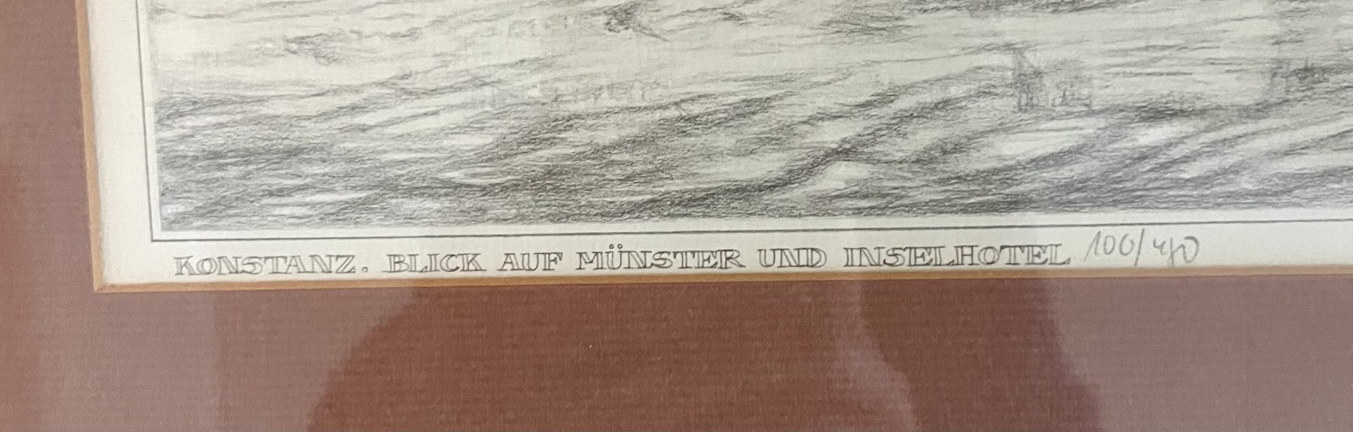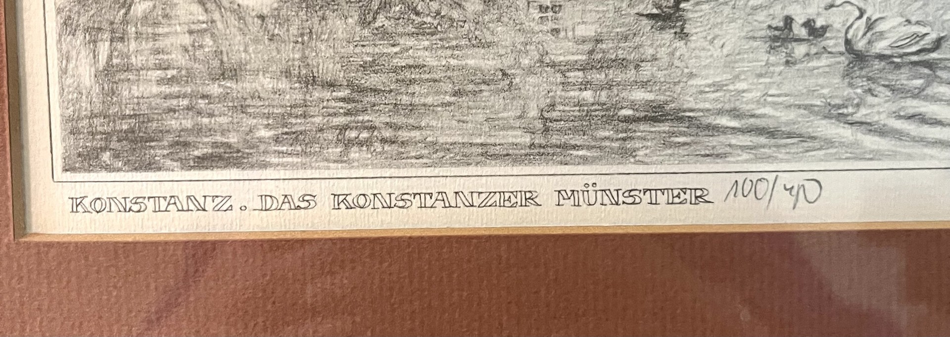 Blömer, Irene (20. Jahrhundert), Konstanz, sechs Original-Lithographien. Darunter: "Konstanz. Die Alte Dompropstei", "Konstanz. Hafen und Konzilgebäude", "Konstanz. Das Schnetztor", "Konstanz. Das Rathaus", "Konstanz. Blick auf Münster und Inselhotel" und "Konstanz. Das Konstanzer Münster".
