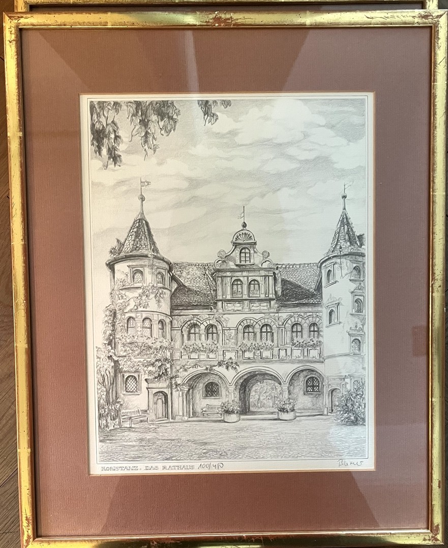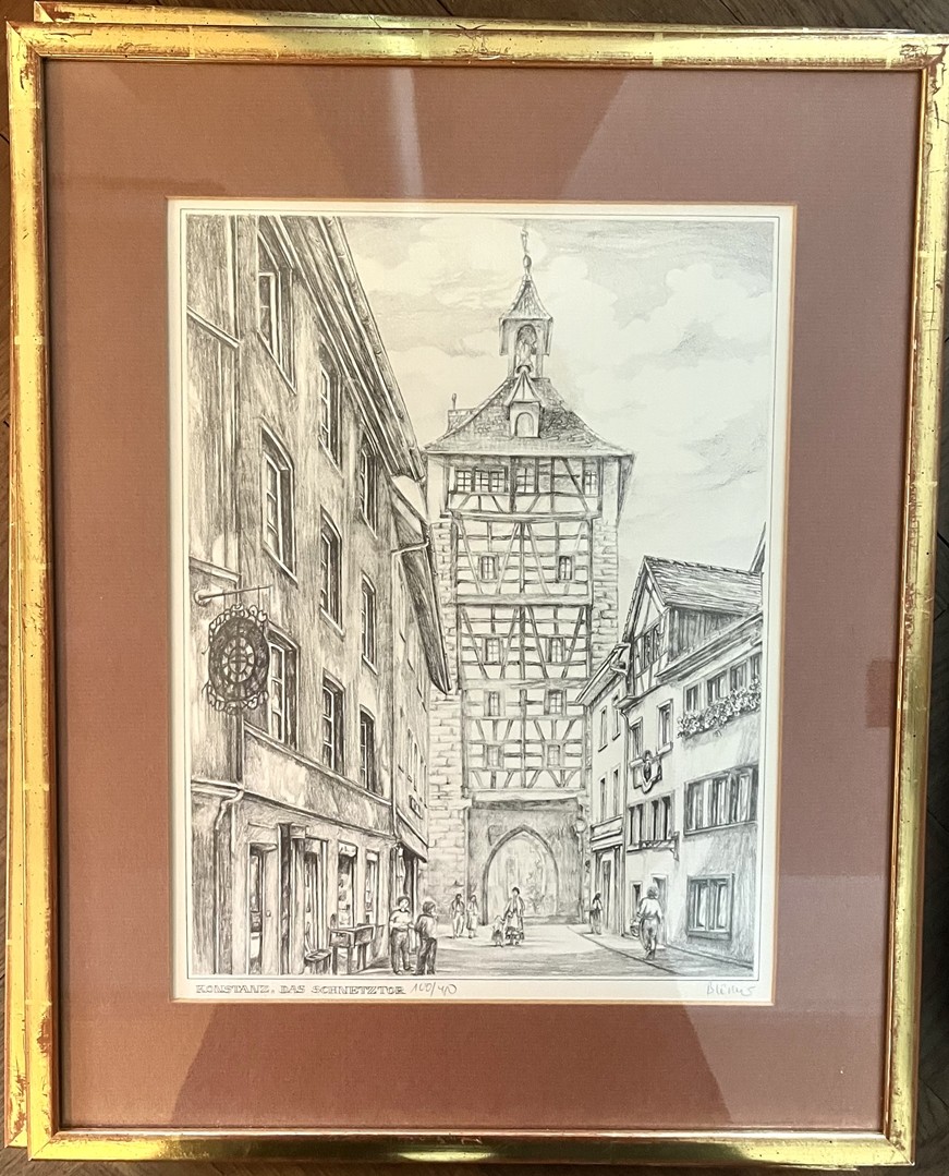 Los 351 - Blömer, Irene (20. Jahrhundert), Konstanz, sechs Original-Lithographien. Darunter: "Konstanz. Die Alte Dompropstei", "Konstanz. Hafen und Konzilgebäude", "Konstanz. Das Schnetztor", "Konstanz. Das Rathaus", "Konstanz. Blick auf Münster und Inselhotel" und "Konstanz. Das Konstanzer Münster".