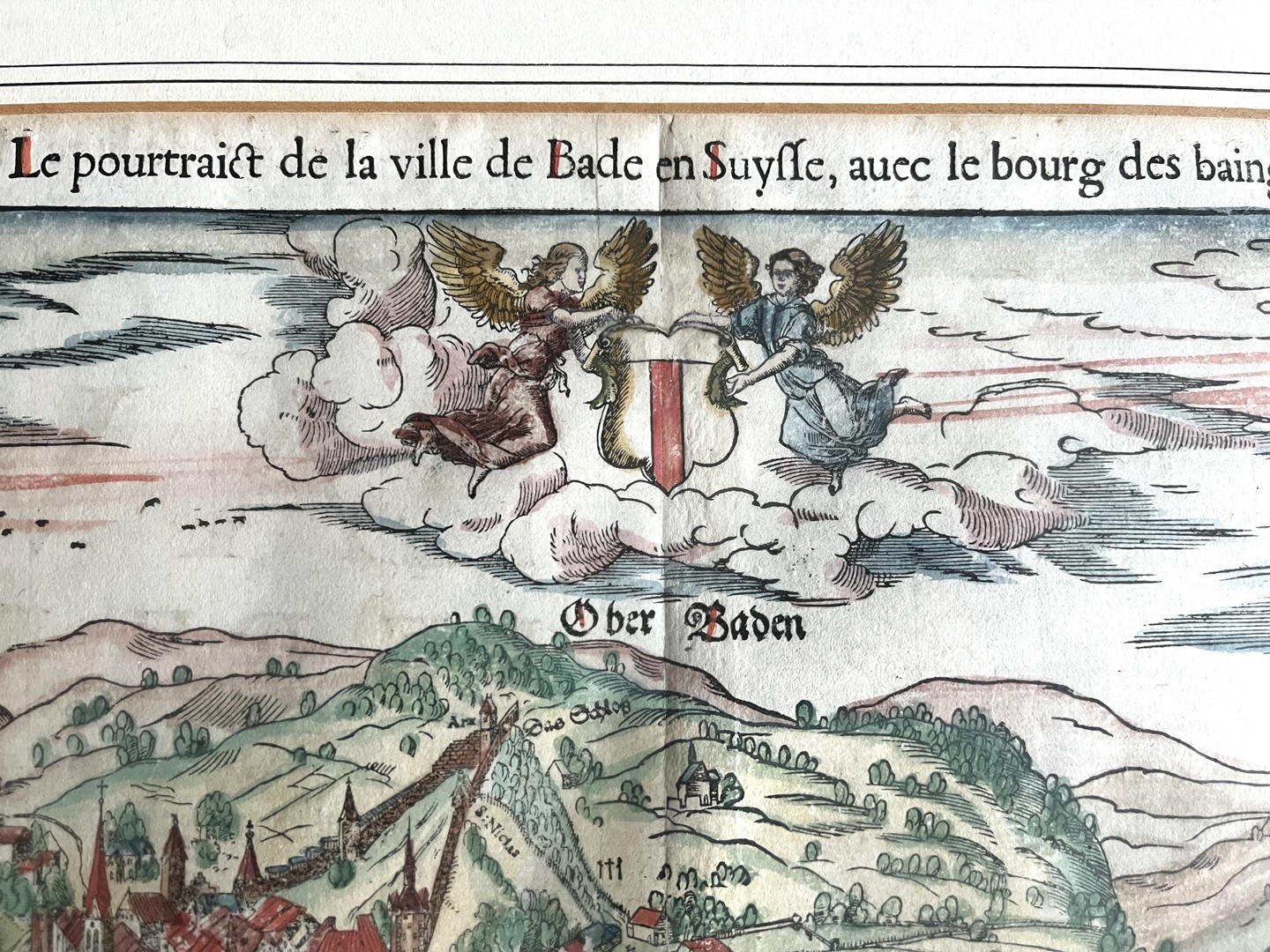 Los 366 - Oberbaden, kolorierter Holzschnitt aus Sebastian Münsters Cosmographie um 1552.
