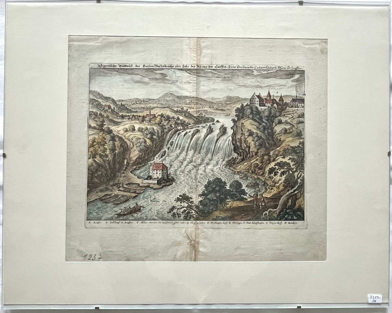 Los 372 - Rheinfall Schaffhausen, von Matthäus Merian d.Ä. (1593-1650), altkolorierter Kupferstich, 1638.