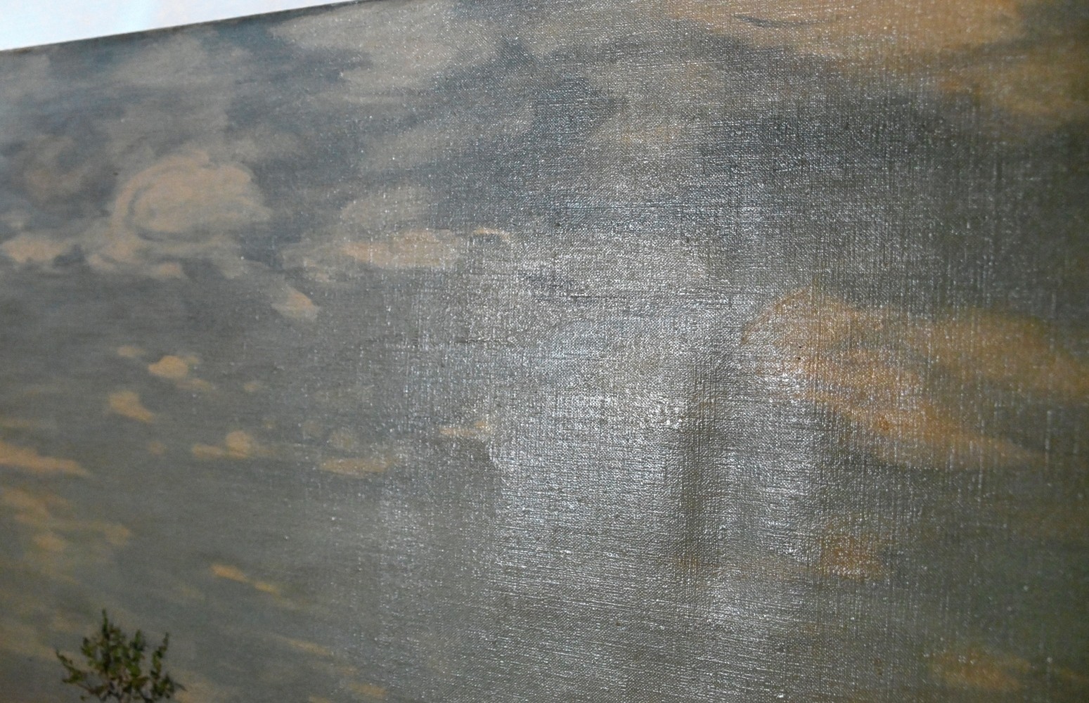 DIETER Hans (1881 Mannheim - 1968 Tuttlingen) ''Hegaulandschaft mit Postkutsche'' weiter Blick auf die Landschaft mit Hegaubergen und Hegaudorf, im Vordergrund eine Postkutsche in bäuerlicher Landschaft, die von zwei Pferden gezogen wird, Ölgemälde auf Leinwand, in der Mitte signiert VII (19)47, 97x125cm, R Das Gemälde stammt aus dem Besitz der Familie Kleber und hing ehemals in der Kleber Post Bad Saulgau. Der Gründer der Kleber Post war mit Hans Dieter befreundet und hat das Gemälde von ihm erworben. *Dieter besuchte zwar Lehrer-Seminare, blieb jedoch ohne akademische Ausbildung und war auch als Zeichenlehrer überwiegend Autodidakt. Er begann im Jahre 1900 mit der Zeichenlehrtätigkeit an verschiedenen Schulen. Nach dem Ende des Ersten Weltkriegs war Dieter als freischaffender Künstler tätig. Im Jahr 1950 begründete er den Bodensee-Club mit und trat 1954 in die Gemeinschaft deutscher Künstler ein.*