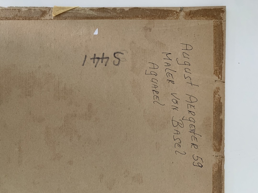 Rückseitig mit Kugelschreiber beschriftet "August Aergerter 59; Maler von Basel; Aquarell; S441".