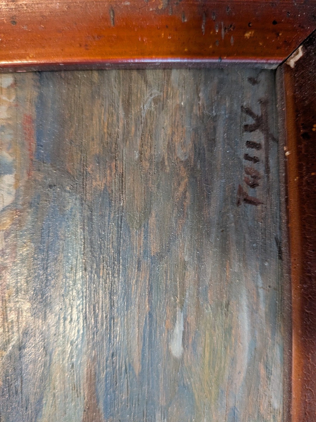 Los 503 - Anonym (19./20. Jahrhundert) Seelandschaft, Öl auf Leinwand. Das Gemälde zeigt eine Seelandschaft mit Segelbooten und einem Ruderboot, die in einem impressionistischen Stil gemalt ist. Holzrahmen ist teilweise leicht beschädigt und etwas locker.