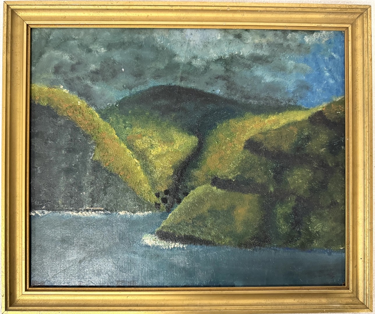 Anonym (20. Jahrhundert) Bucht mit Bergen, Öl auf Karton.