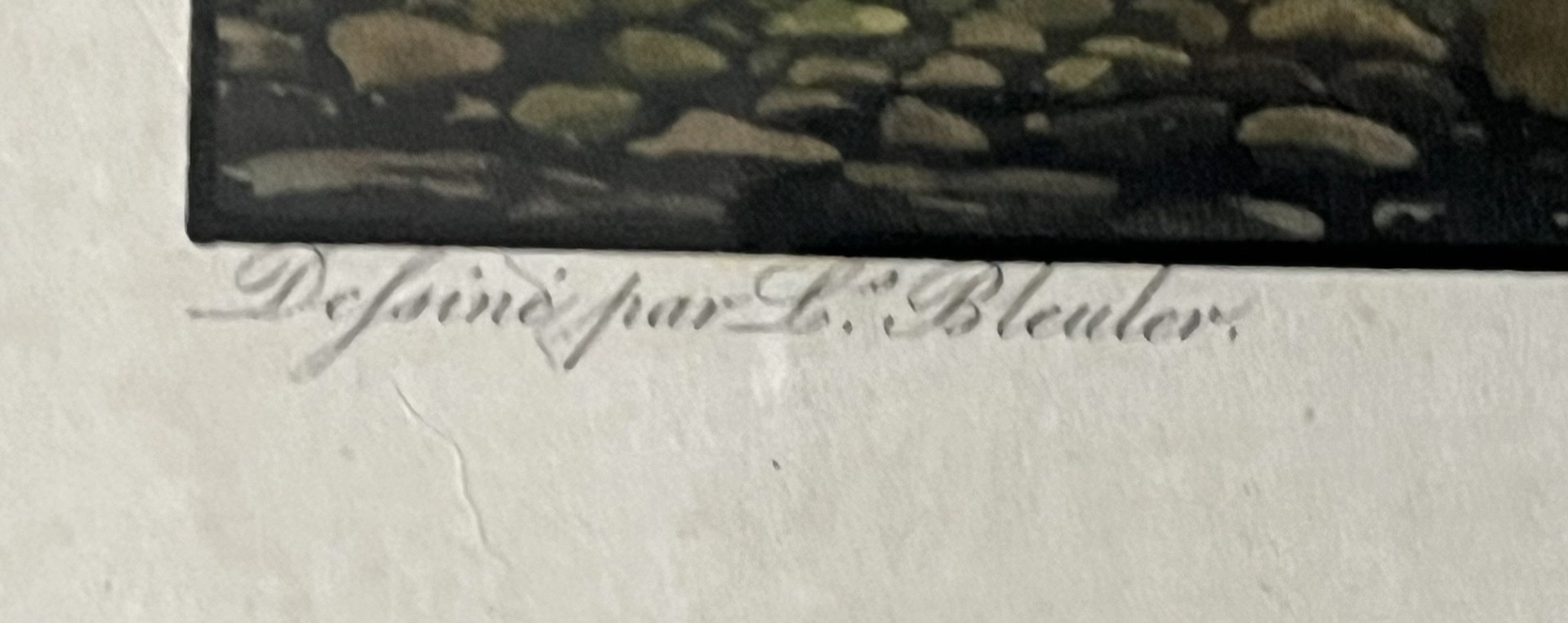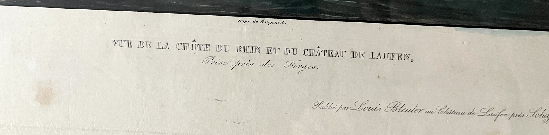 Bleuler, Louis (1792-1850) "Vue de la chute de rhin et du Chateau de Laufen", gouachierte Umrissradierung.