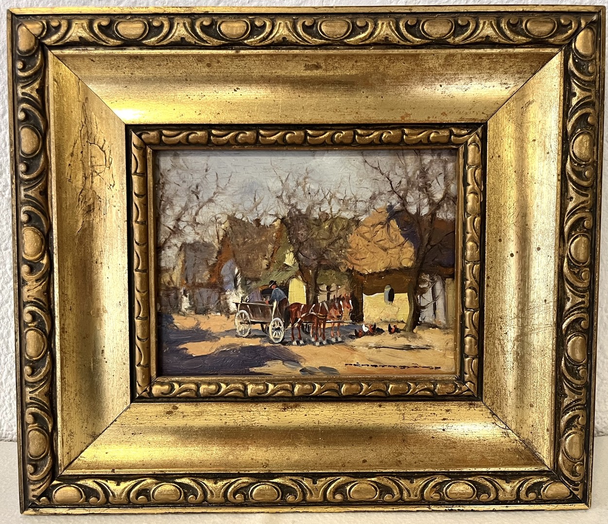 Edvi-Illés, Ödön (1877-1945) Ungarisches Bauerndorf, Öl auf Malkarton.