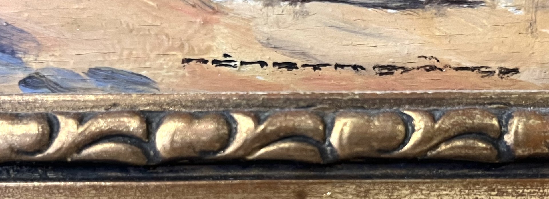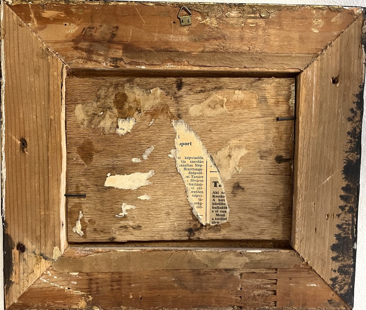 Rückseitig auf ungarisch beschrieben: Ausstellungen in Paris und Budapest u.a. Arbeiten hängen in einigen Museen. Bewertet durch Experten der Gruppe 'Biralati Isopart'. Erfasst/nummeriert: 423/981