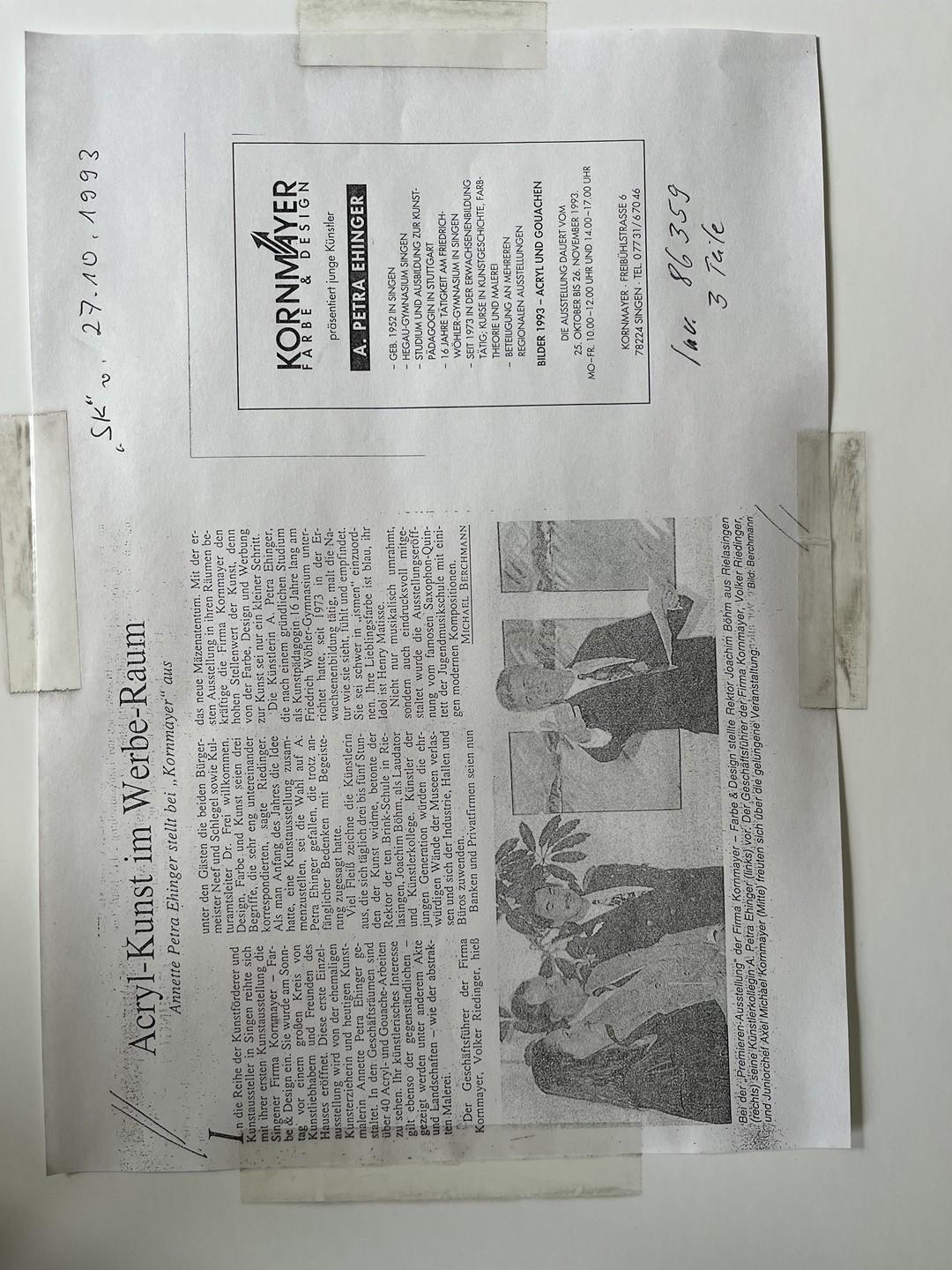 Ehinger, Annette Petra (1952 geboren) Modernes Triptychon, 1993, Acryl.