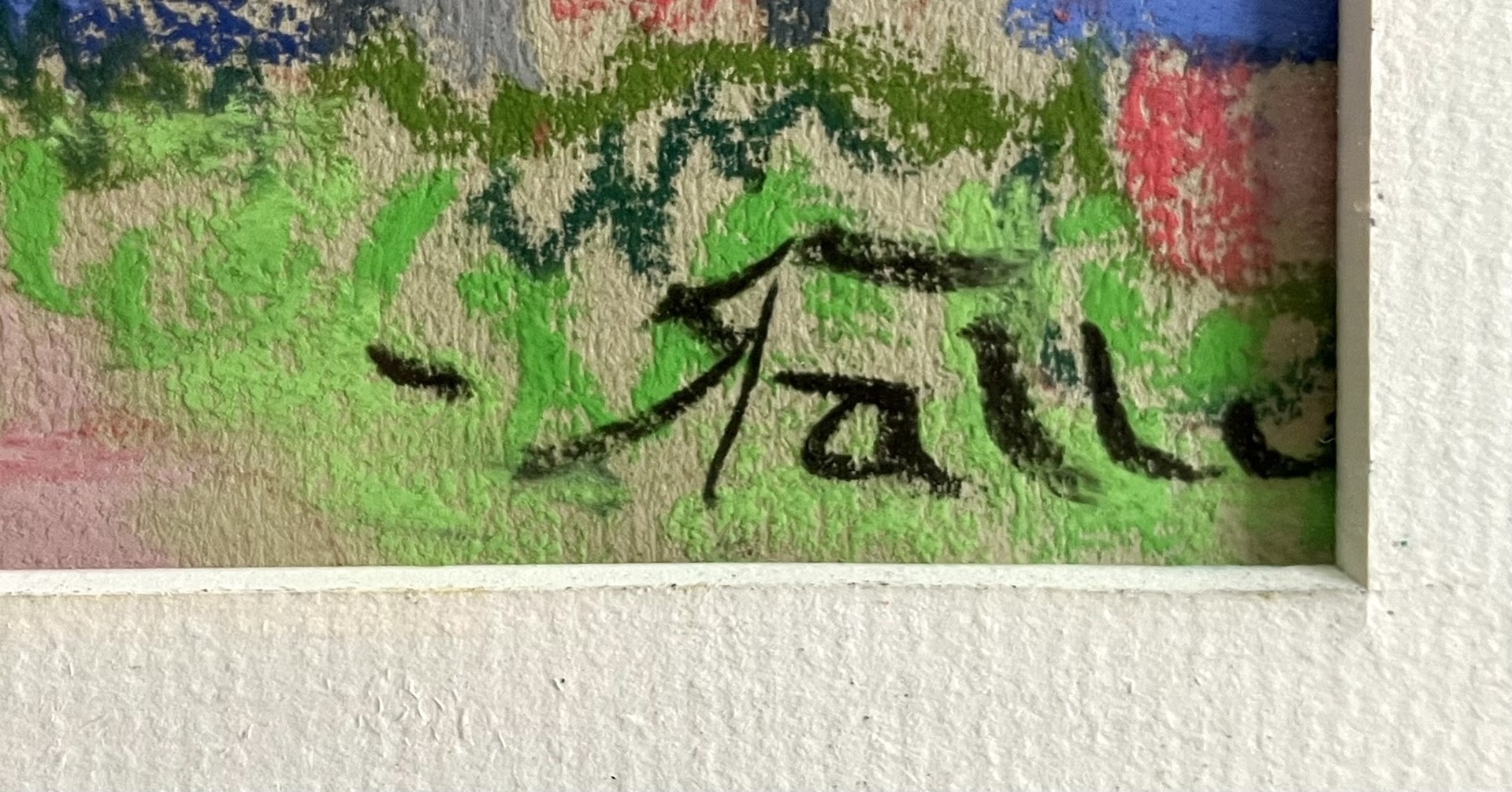 Dieses Pastell trägt klar Elemente seines großen Vorbilds Otto Dix. Sehr intensive Farben in diesem expressionistischen Gemälde mit "Fabelwesen" als Wolken.