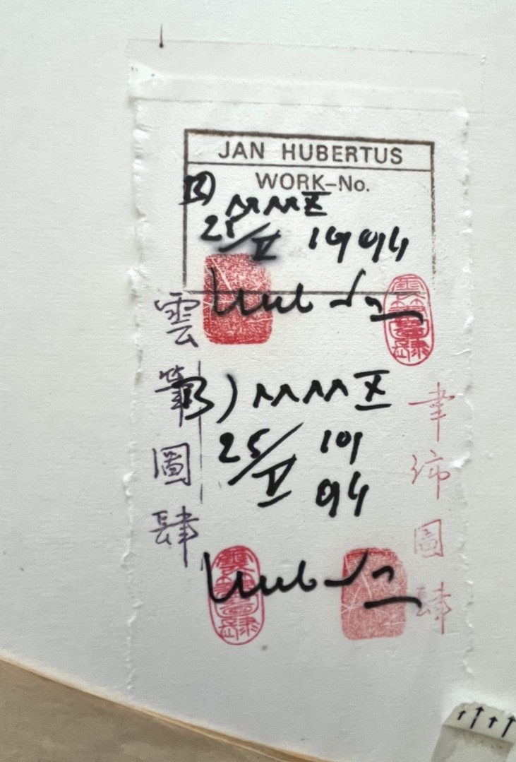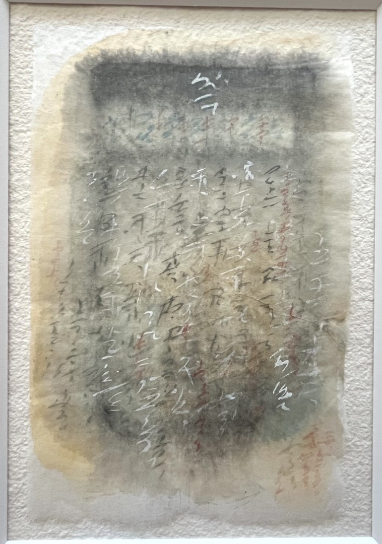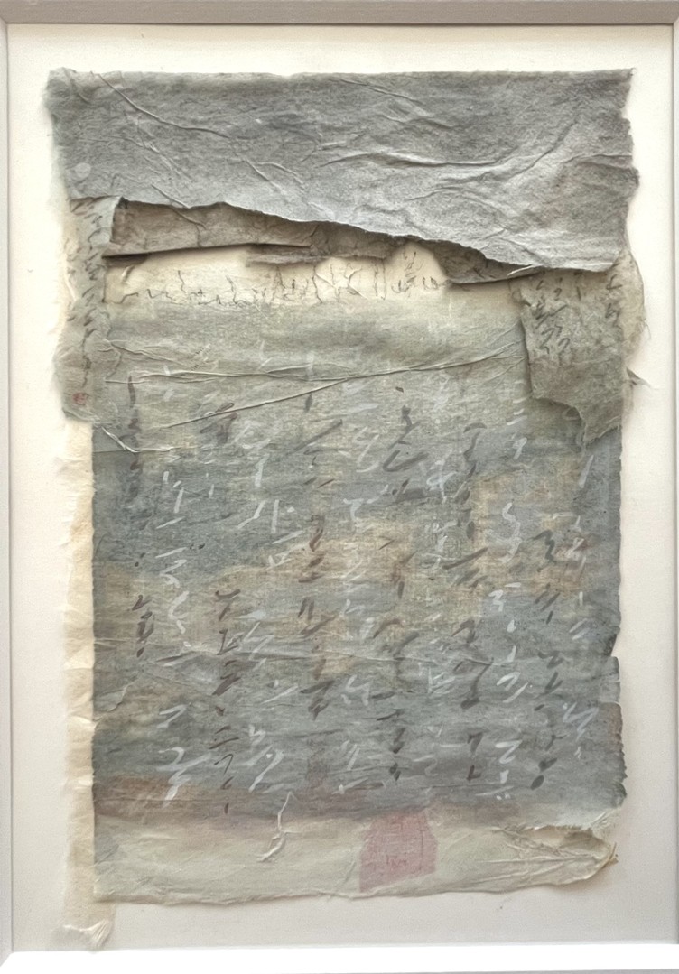 Hubertus, Jan (1920-1995) Fernöstliche Inspiration, 1987, zwei Collagen. Schriftzeichen auf Papier gemalt, dieses wiederum aufgeklebt. Ästhetische Darstellung.