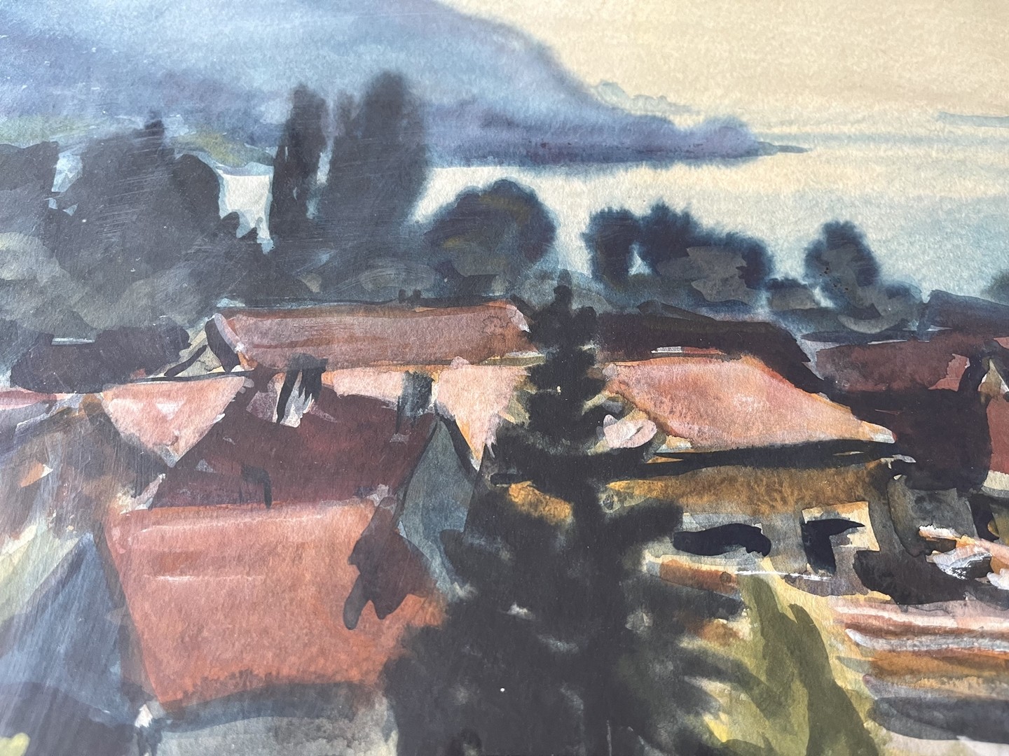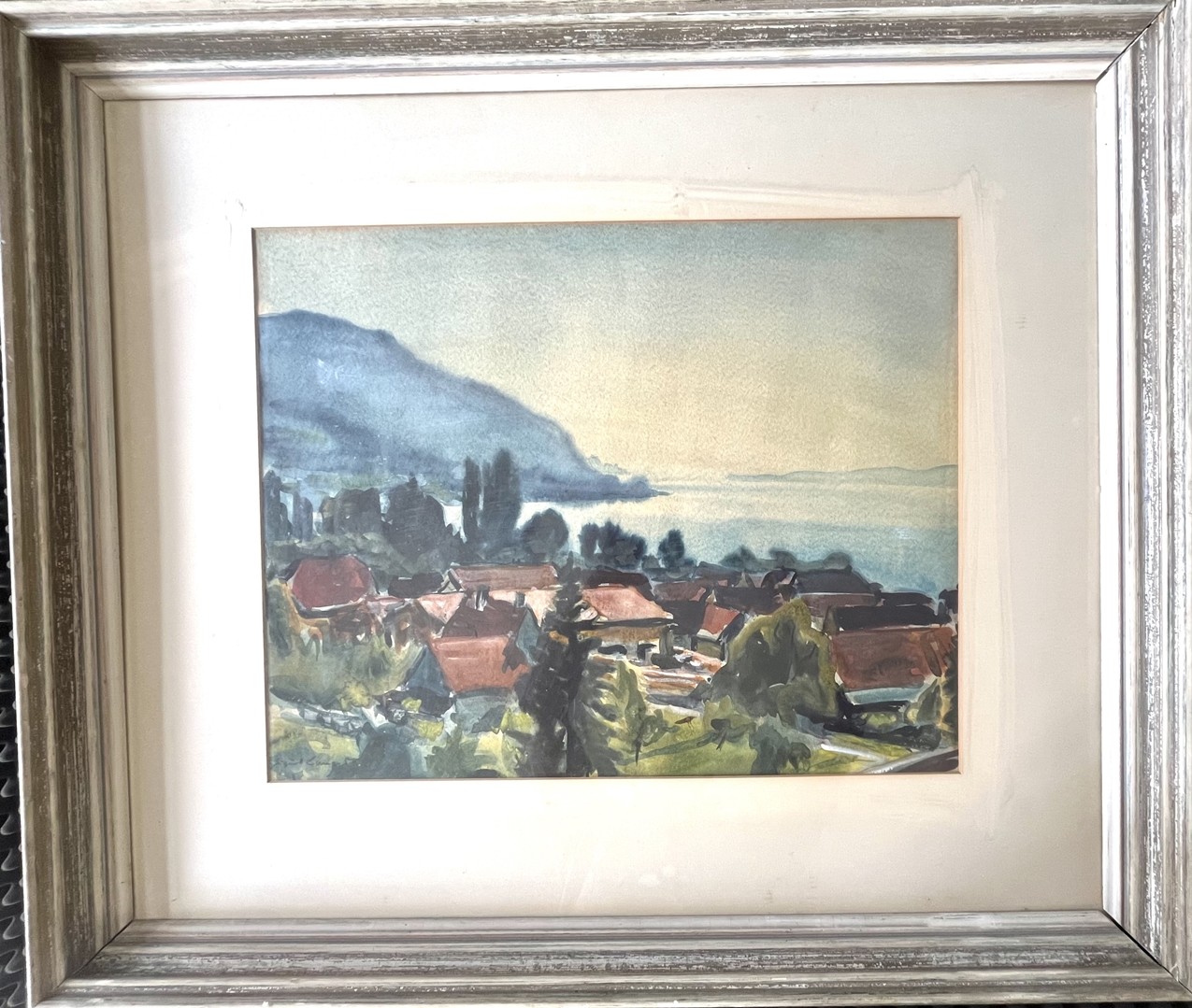 Lange, Sigurd (1904-2000) Stimmungsvolle Landschaftsszene am Bodensee, 1958, Aquarell.