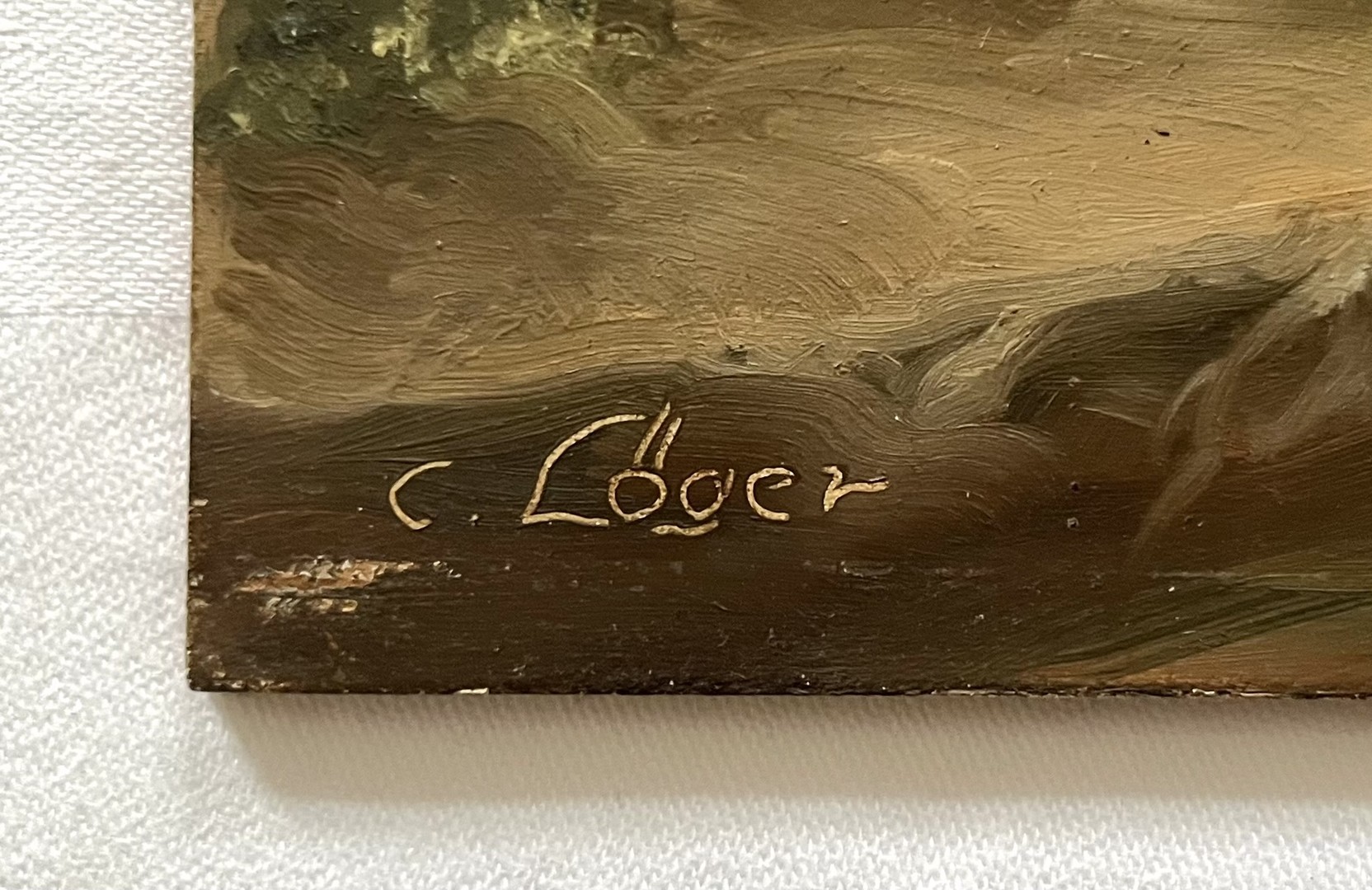 Platte 24 x 30 cm, Farbabschürfungen im Bereich des ehemaligen Rahmens / muss neu gerahmt werden.