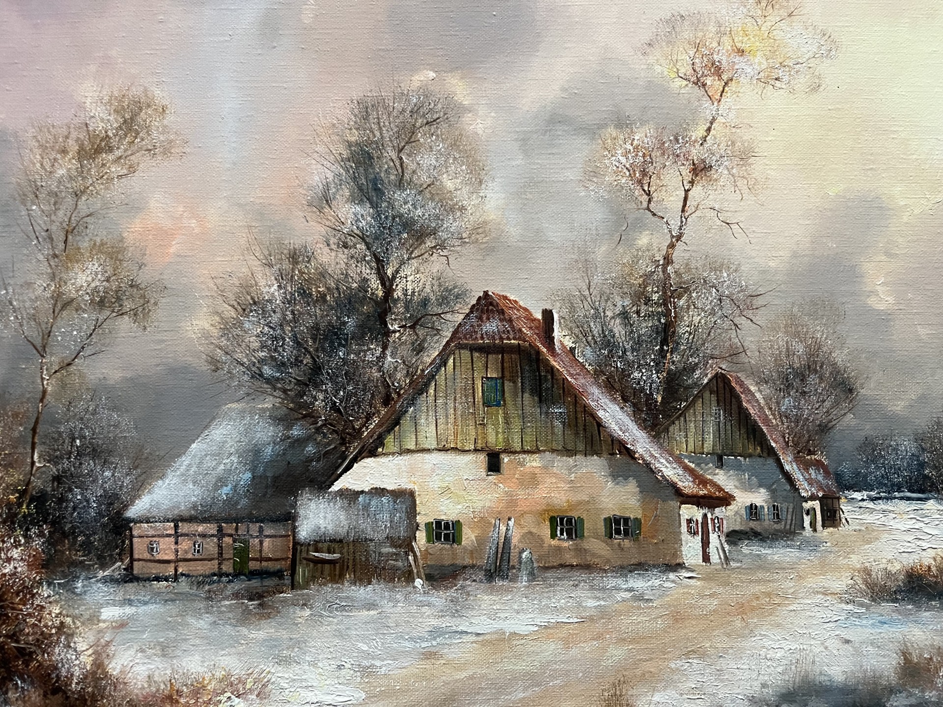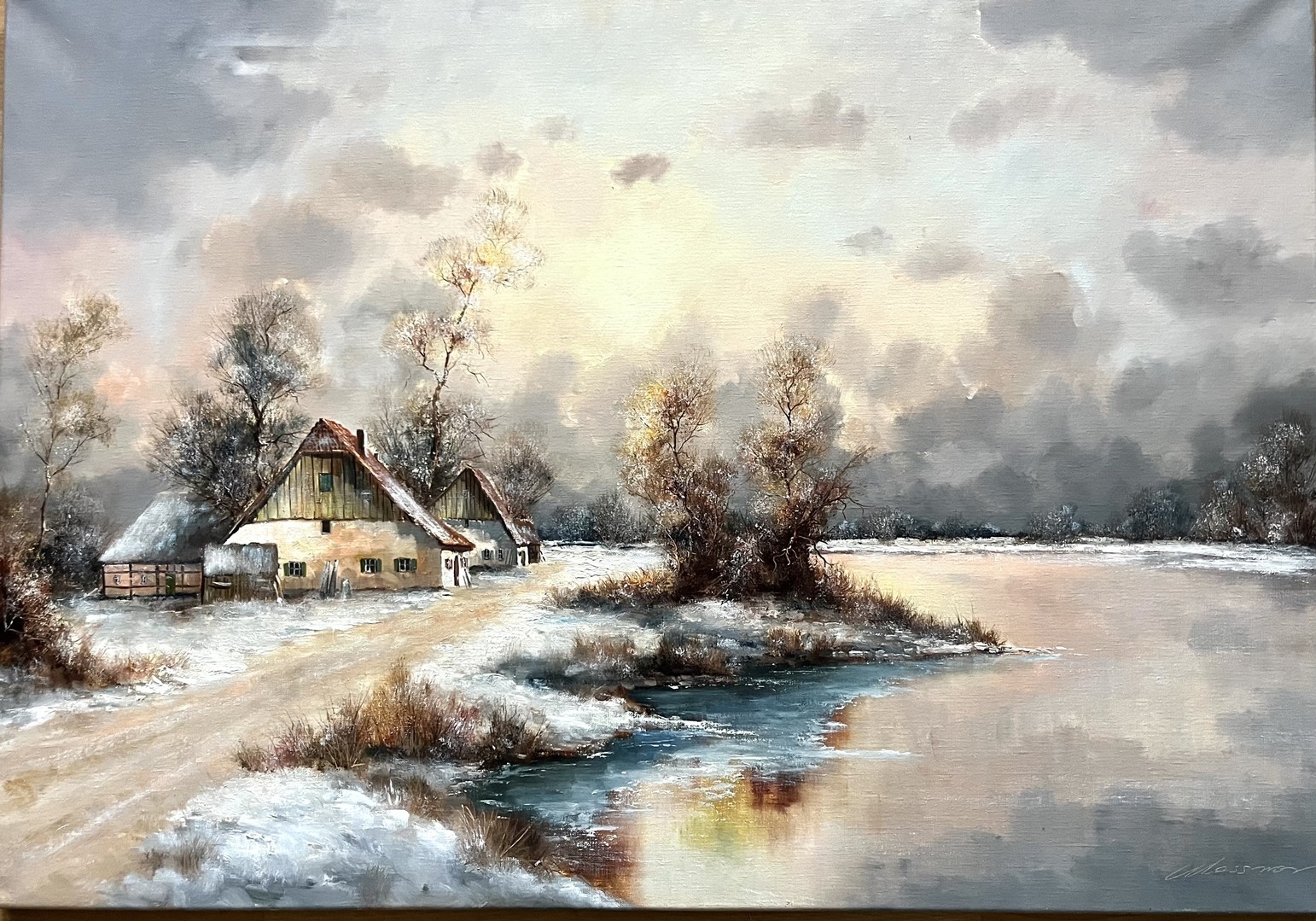 Messmer, Gerhard (1931 geboren) "Winterabendsonne", Öl auf Leinwand.