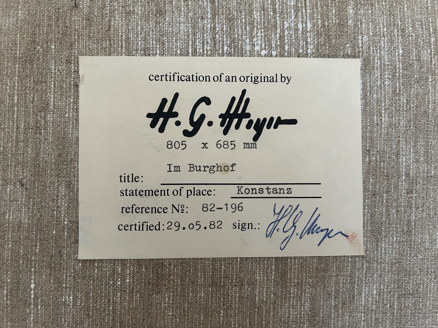 Los 573 - Meyer, H.G. (20. Jahrhundert) "Im Burghof", 1982, Öl auf Leinwand.