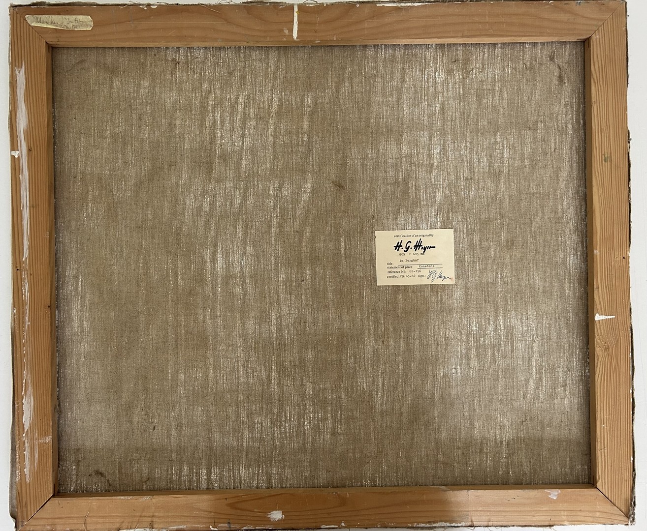 Meyer, H.G. (20. Jahrhundert) "Im Burghof", 1982, Öl auf Leinwand.