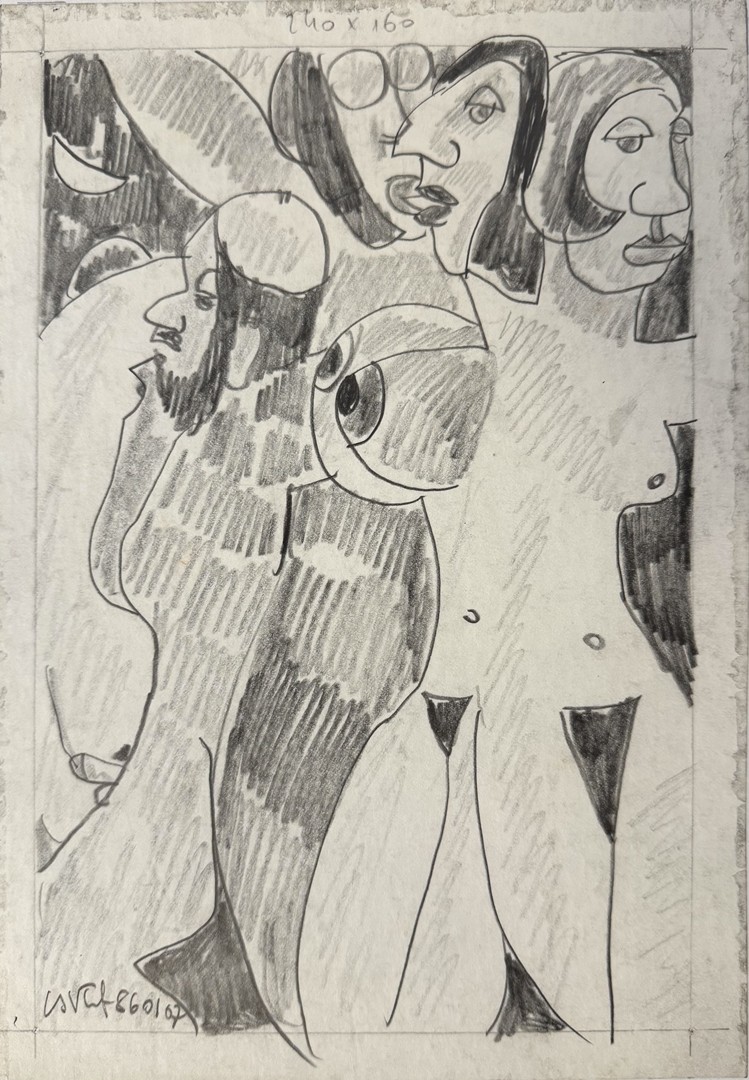 Németh, Miklos (1934-2012) Frauen, Bleistift auf Papier.