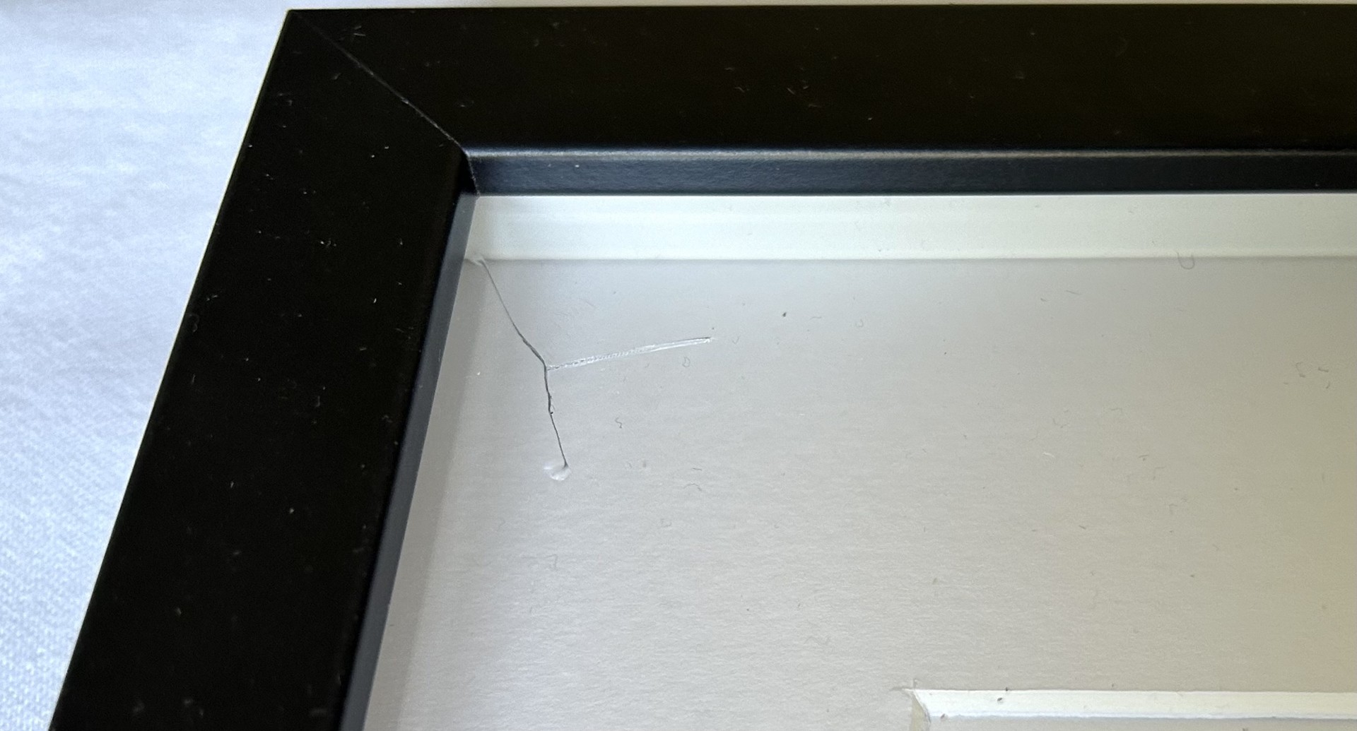 Das Glas des Rahmens ist an der oberen linken Ecke gesprungen.