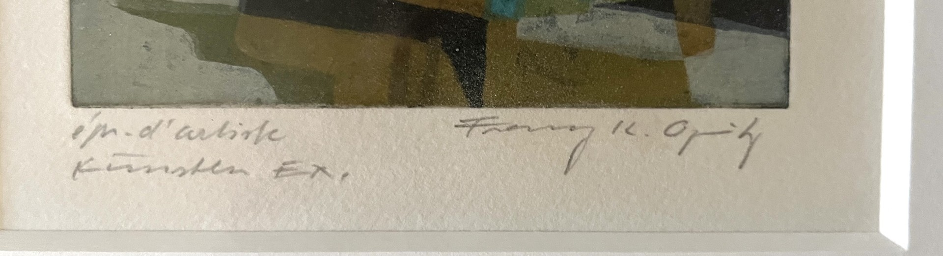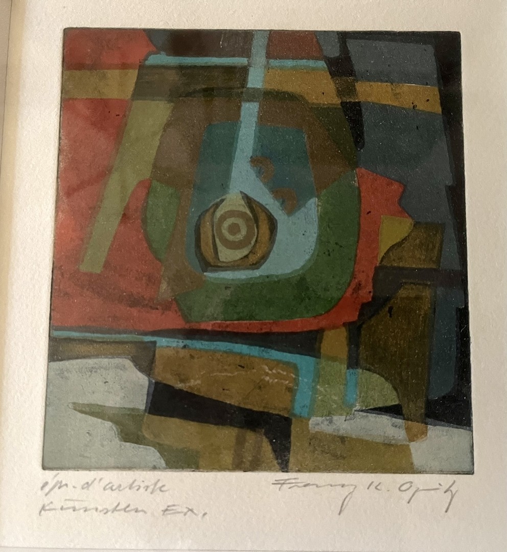 Opitz, Franz Karl (1916-1998) Komposition in Rot, Radierung / kolorierte Aquatinta. Abstrakte Darstellung verschiedener Formen in ästhetischer Komposition.
