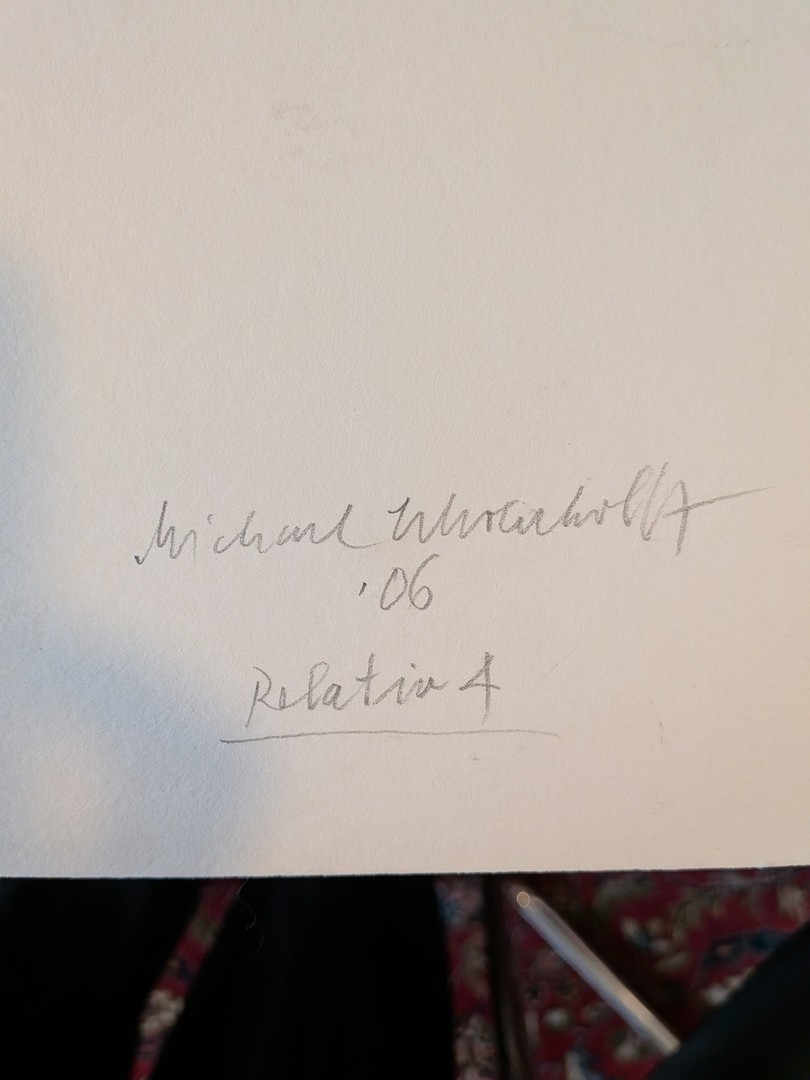 Los 604 - Schönholtz, Michael (1937-2019) "Relativ 4", 2006, Kohlezeichnung auf Papier. Eine abstrakte Zeichnung von Michael Schönholtz, die durch die Wiederholung von 20 dunklen, unregelmäßigen, fast ovalen oder blockartigen Formen gekennzeichnet ist, die jeweils innere, helle, skulpturale Strukturen aufweisen.