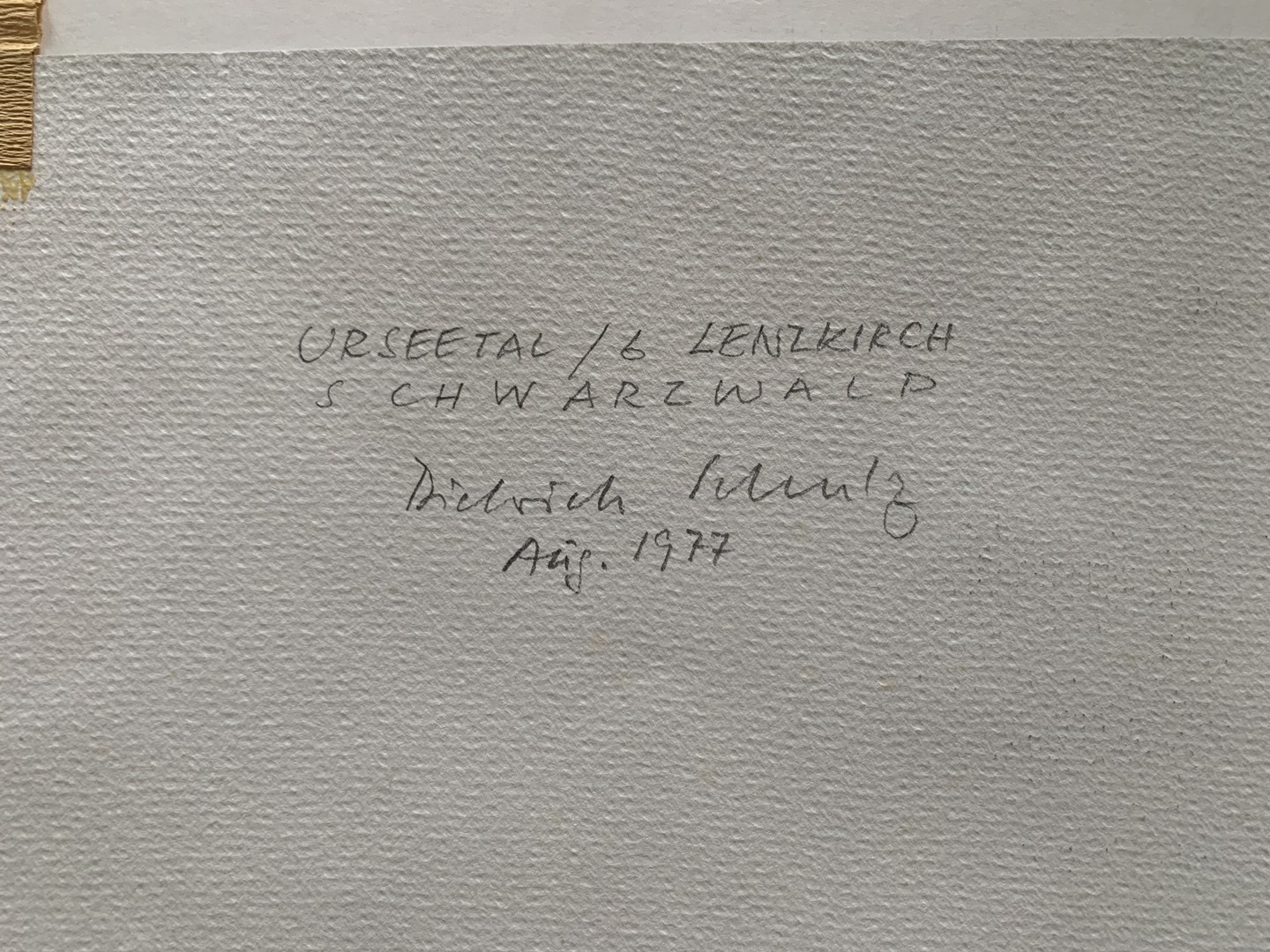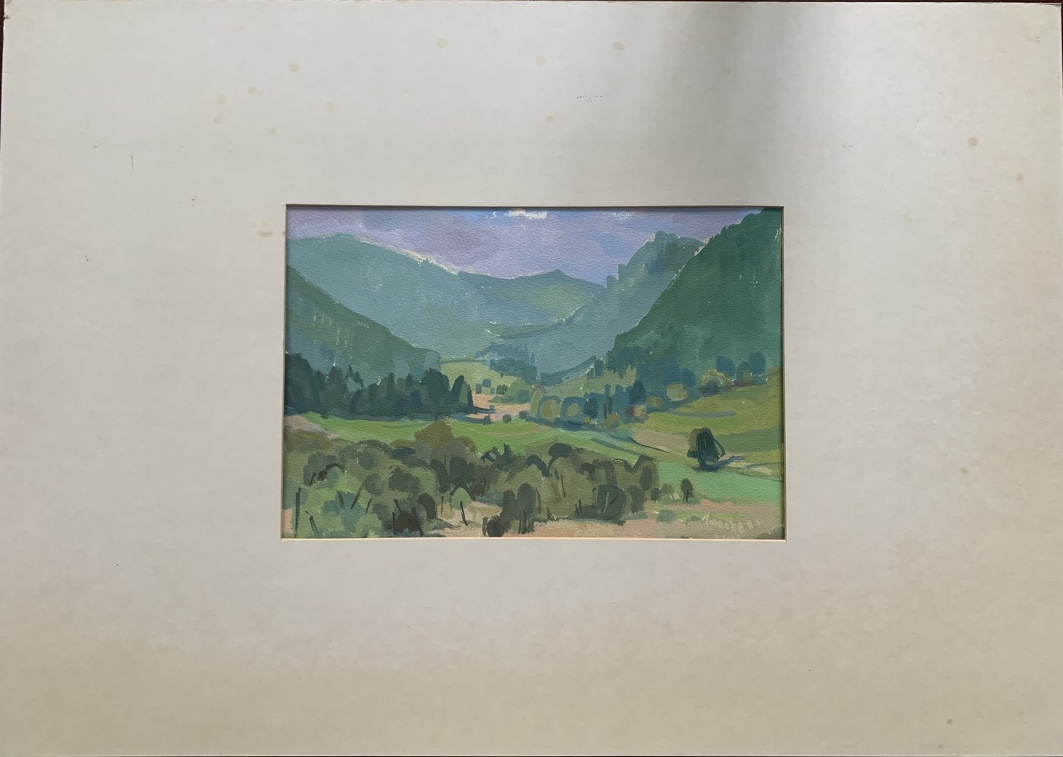 "Urseetal Lenzkirch", 1977, Gouache auf Papier. Rückseitig signiert, datiert und betitelt. Bild 26 x 39 cm, Passepartout 59 x 84 cm.