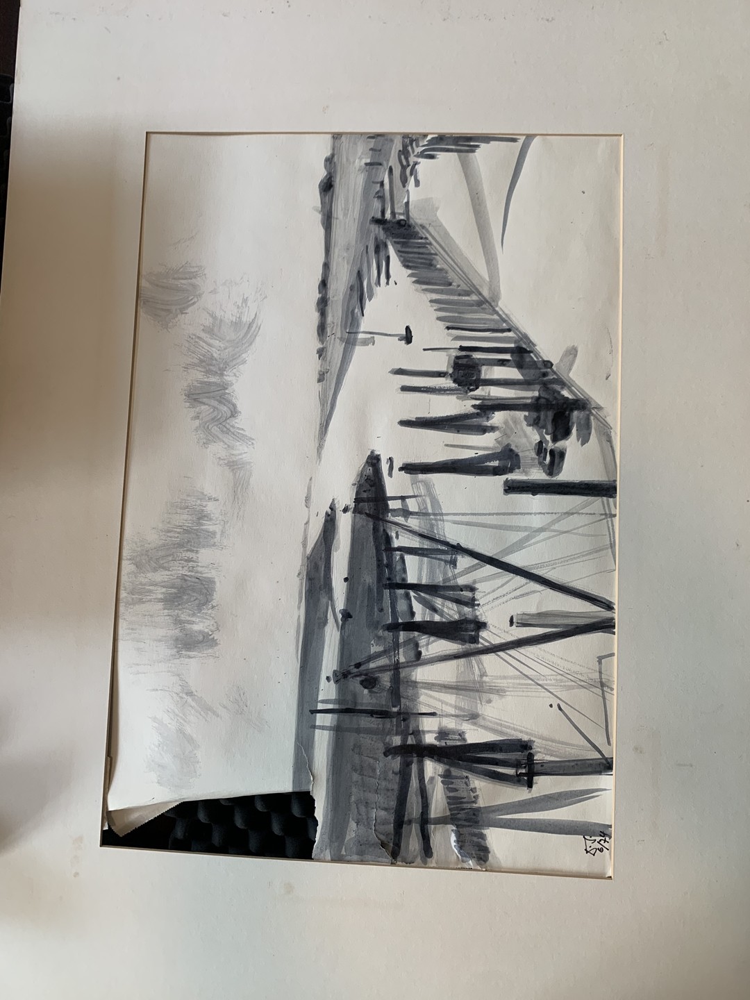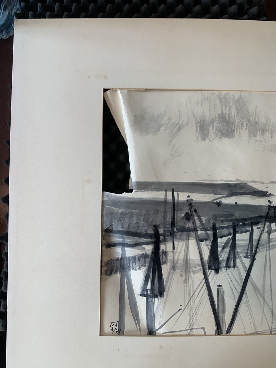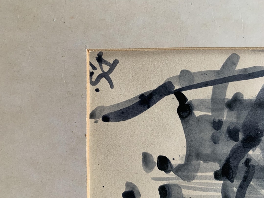 "Bodensee bei Birnau", 1970, Tusche auf Papier. Unten rechts signiert und datiert. Rückseitig signiert, datiert und betitelt. Bild 39 x 57 cm, Passepartout 61 x 86 cm.