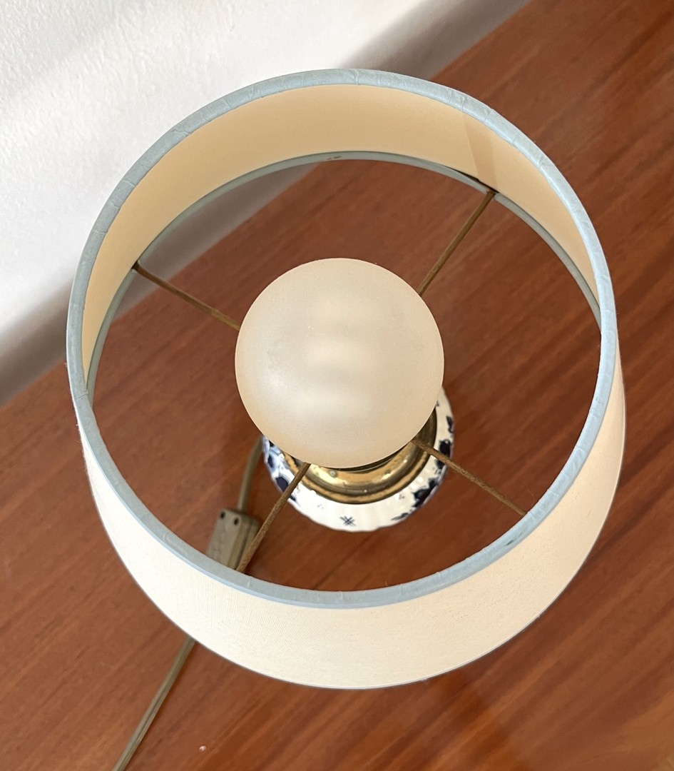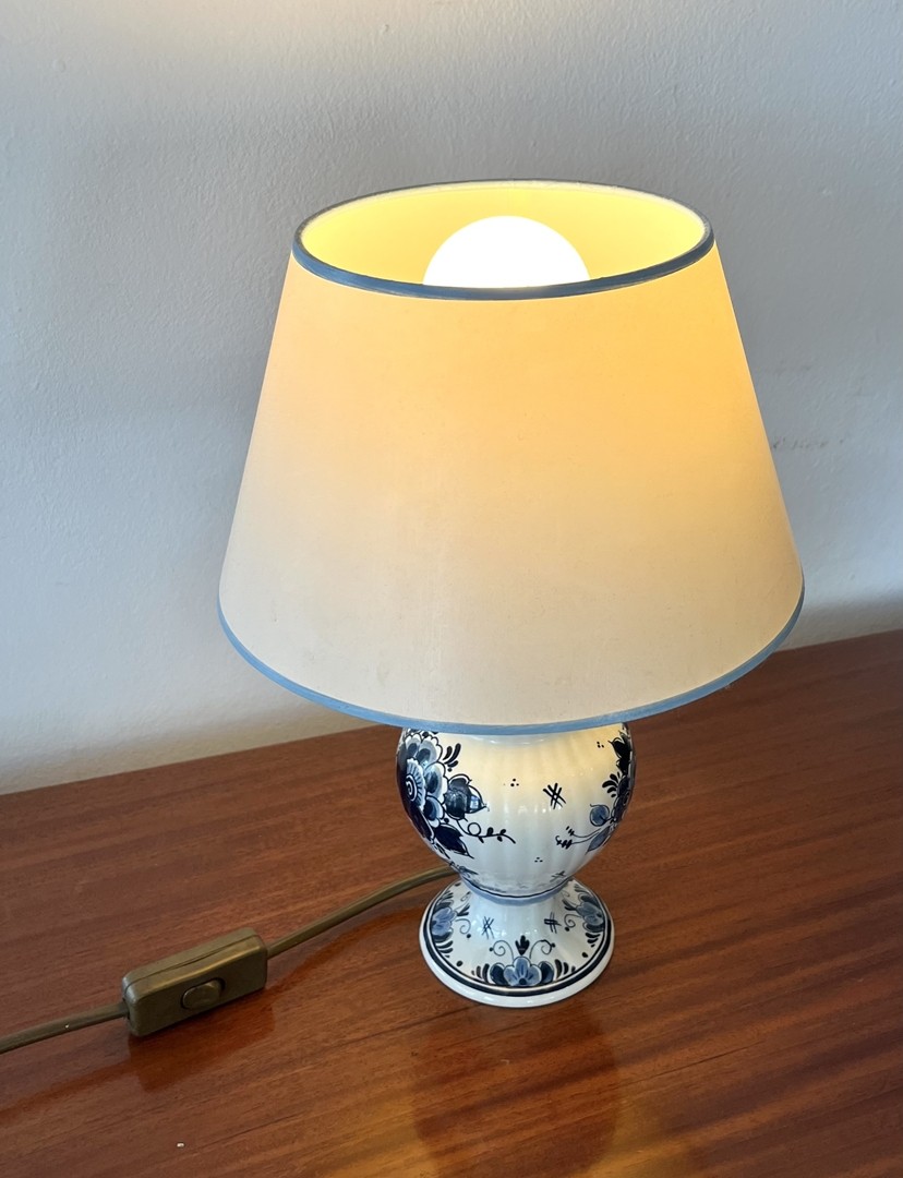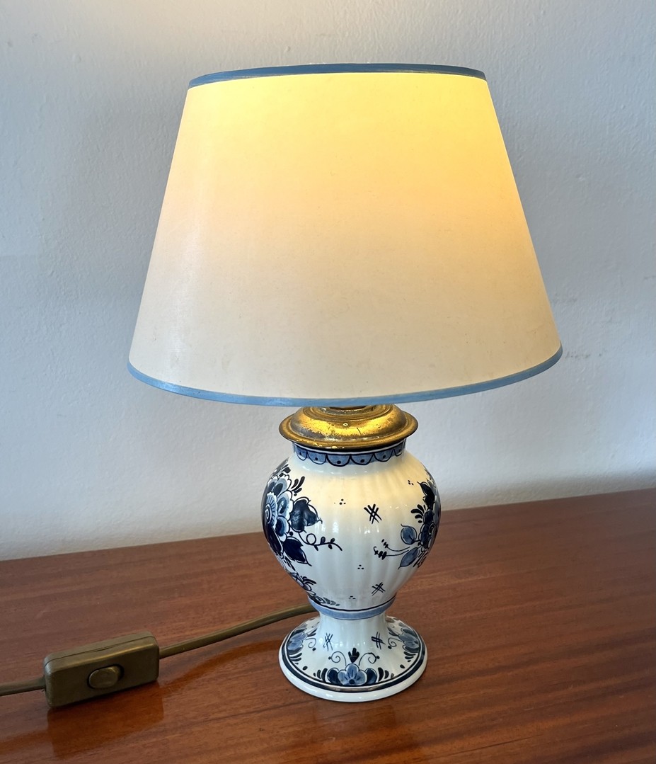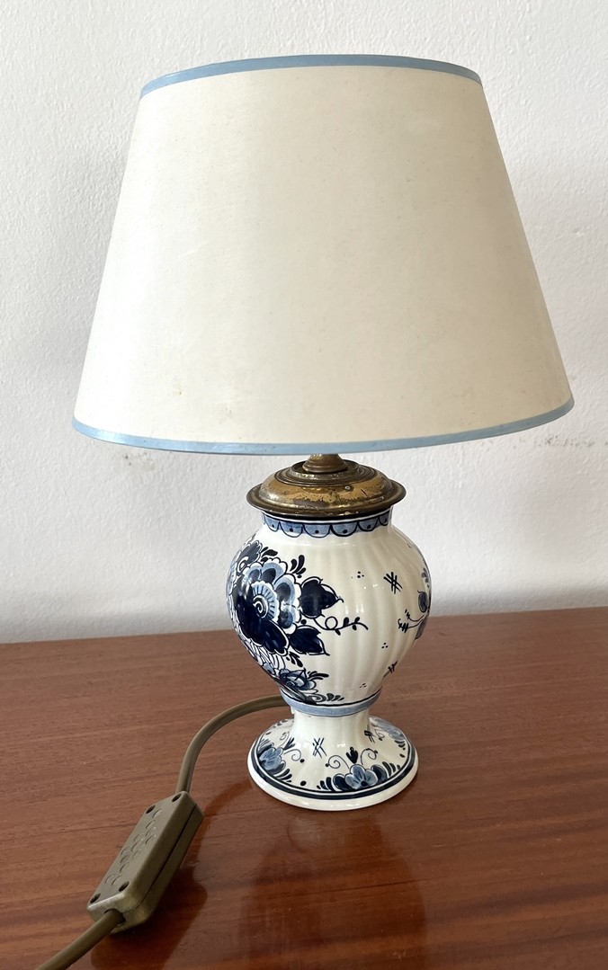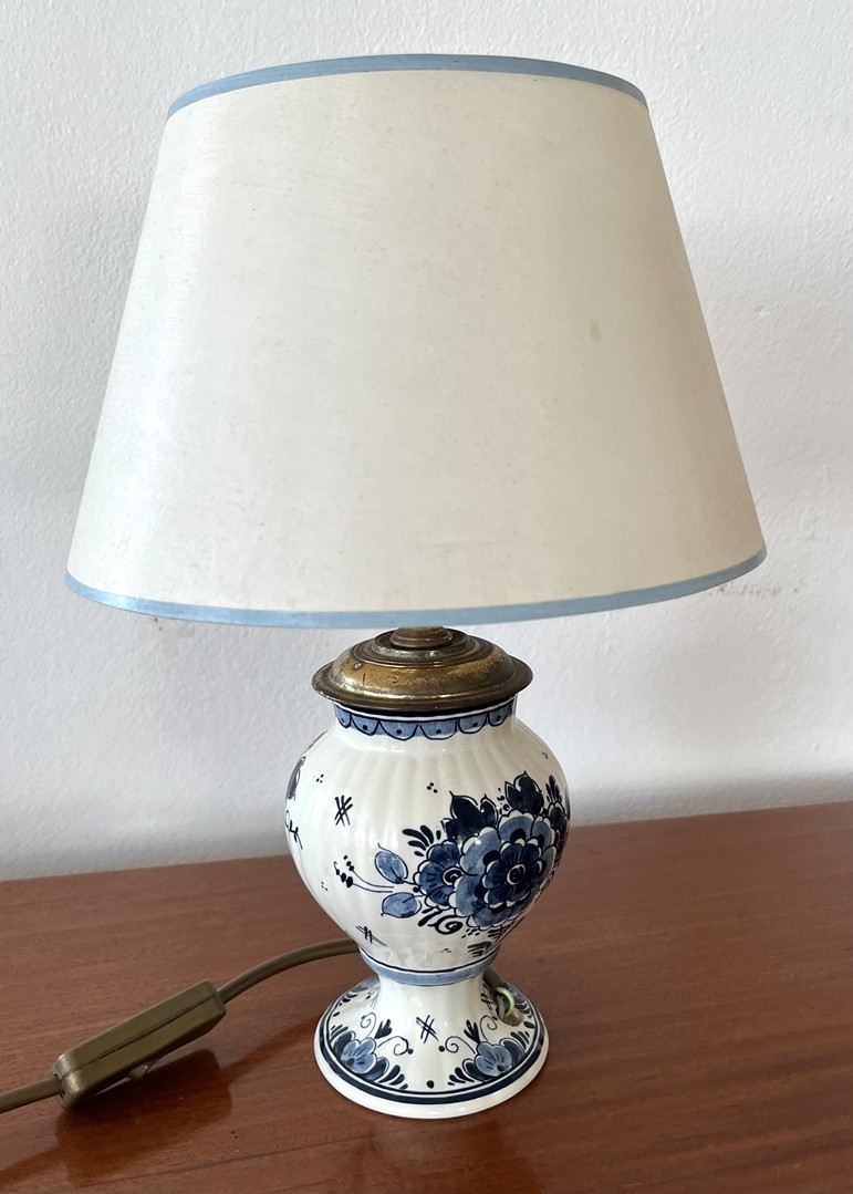 Delft Tischlampe: Vasengefäß als Lampe montiert, floraler Dekor.