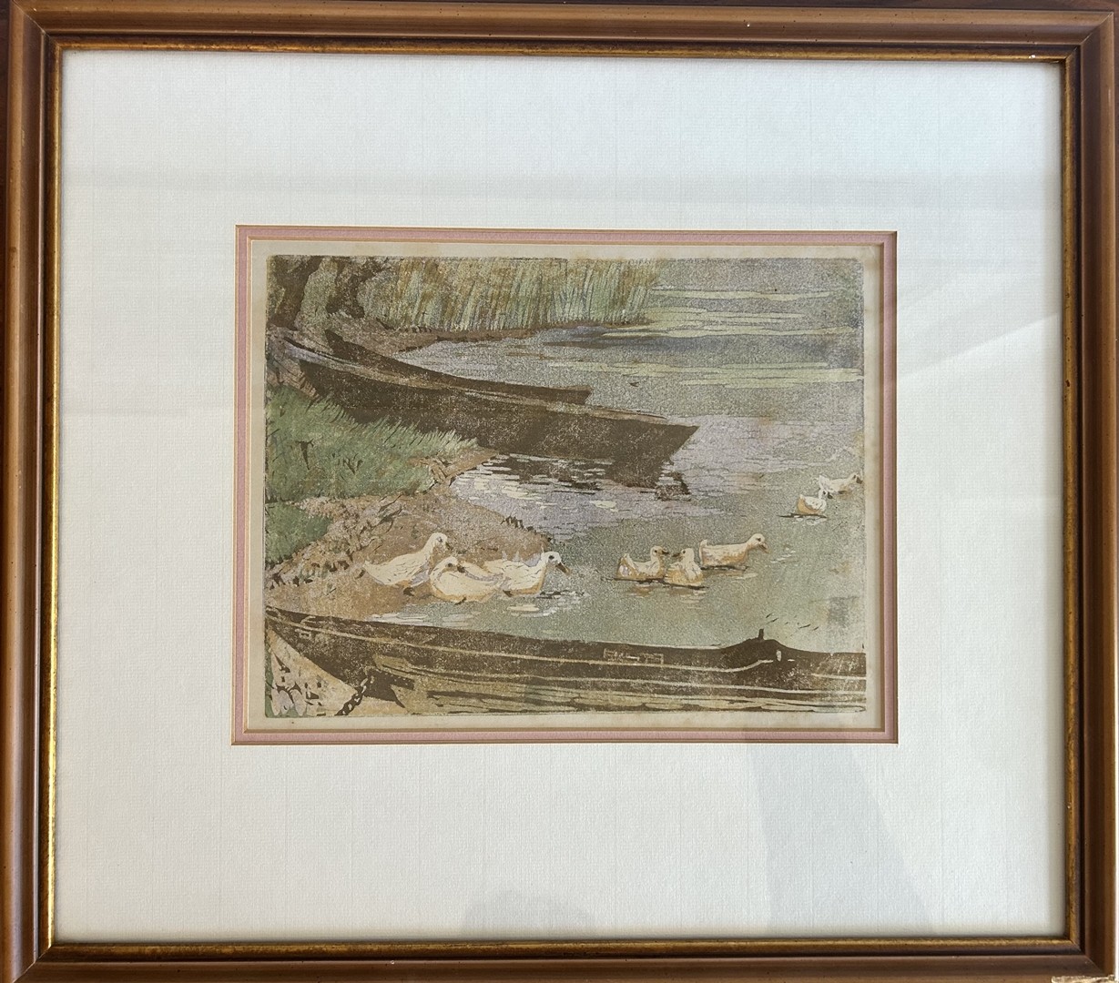 Los 391 - Anonym (20. Jahrhundert) Entenfamilie, Farblithographie.