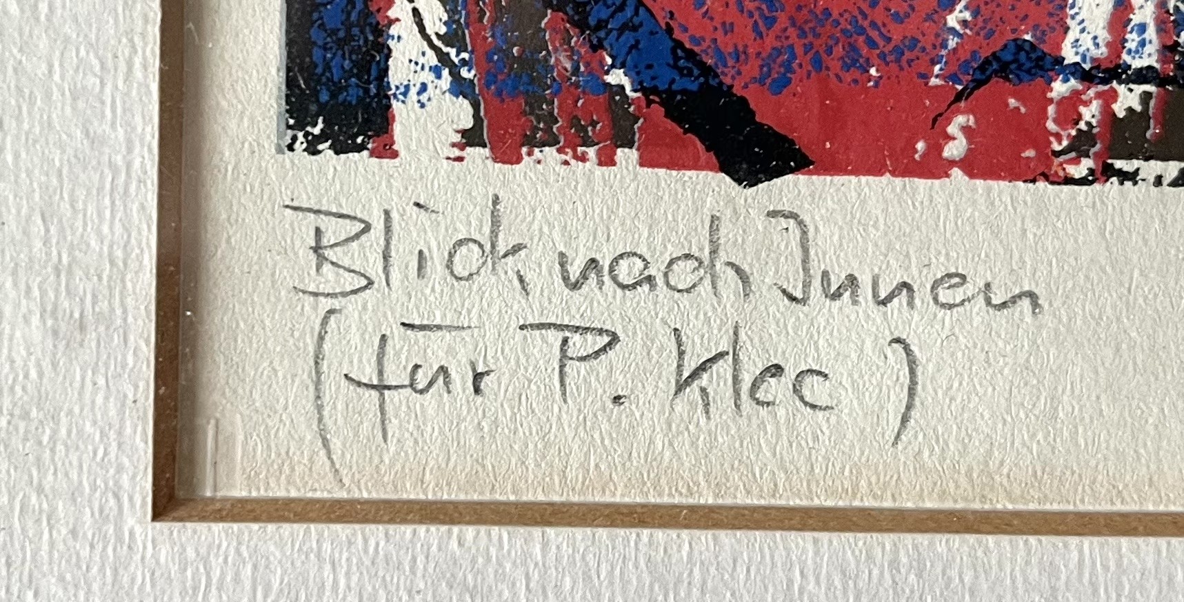 Rechts unten signiert, links unten betitelt und "für P. Klee" gewidmet.