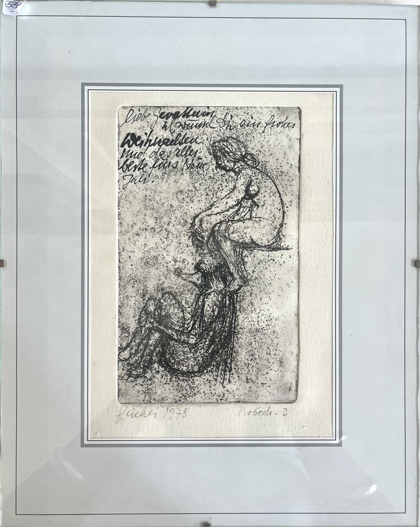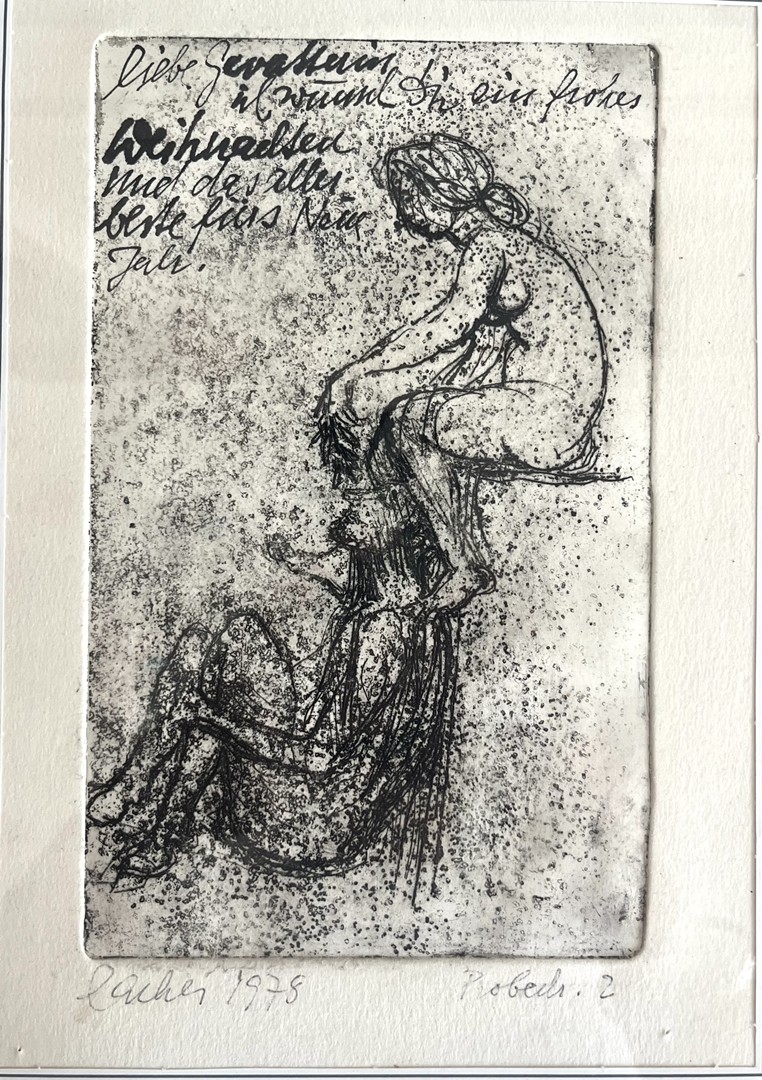 Los 424 - Lacher, Max (1905-1988) "Probedruck 2", 1978, Radierung. Zwei übereinander Sitzende Personen.