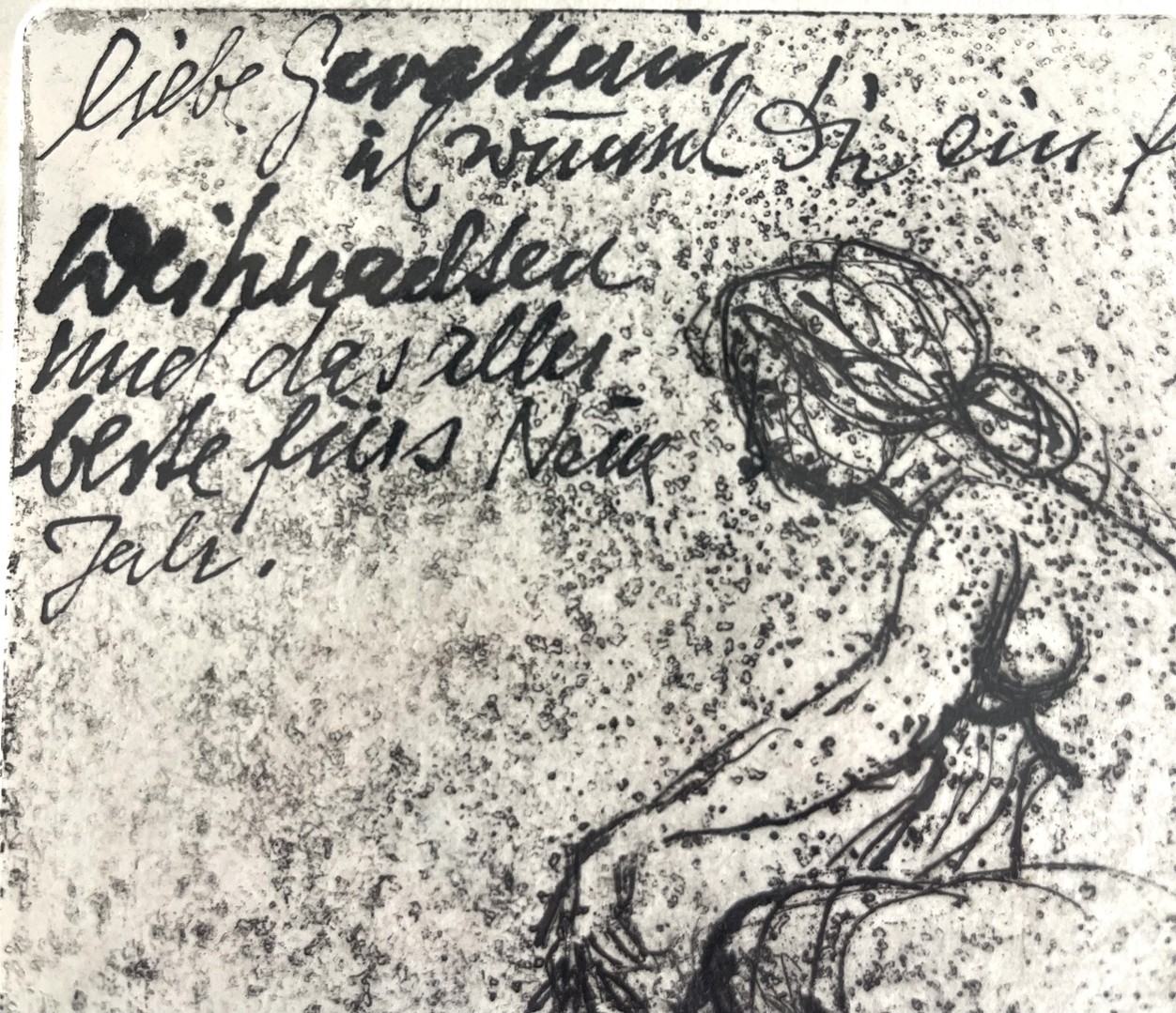 Oben eine Widmung: "Liebe (...) ich wünsche dir ein frohes Weihnachten und das aller beste fürs Neue Jahr!"