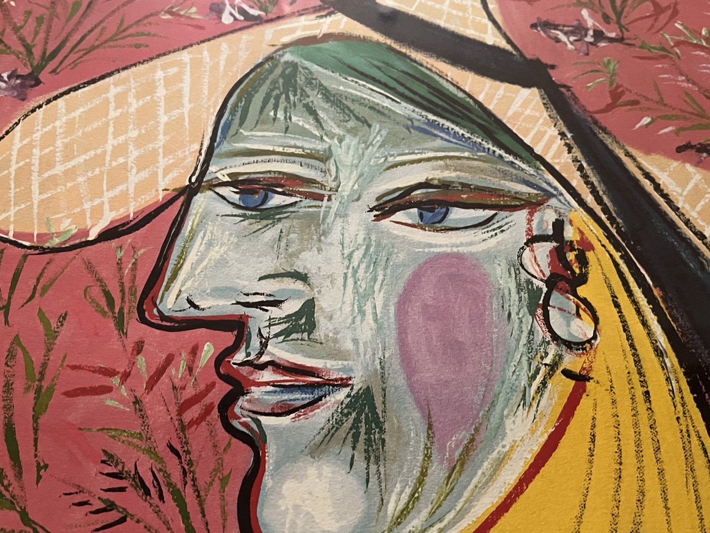 Picasso, Pablo (1881-1973) kubistisches Portrait, 1938, Offsetdruck. Sommerliches Portrait einer Frau mit Hut.