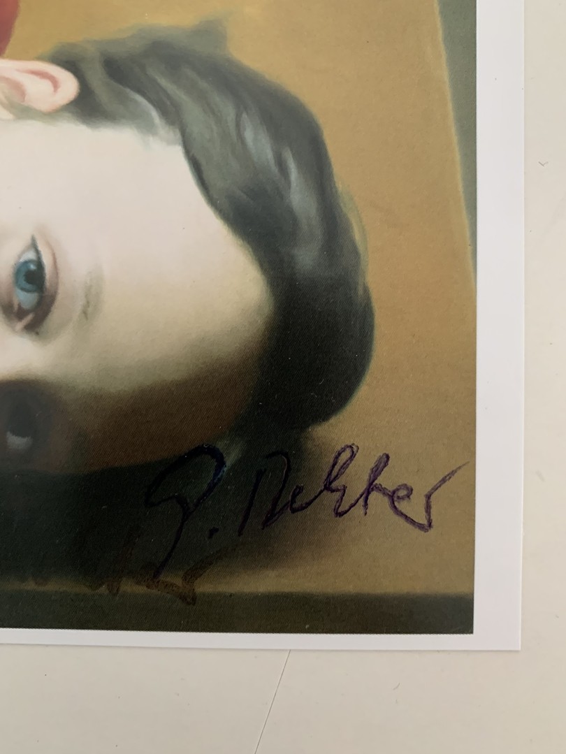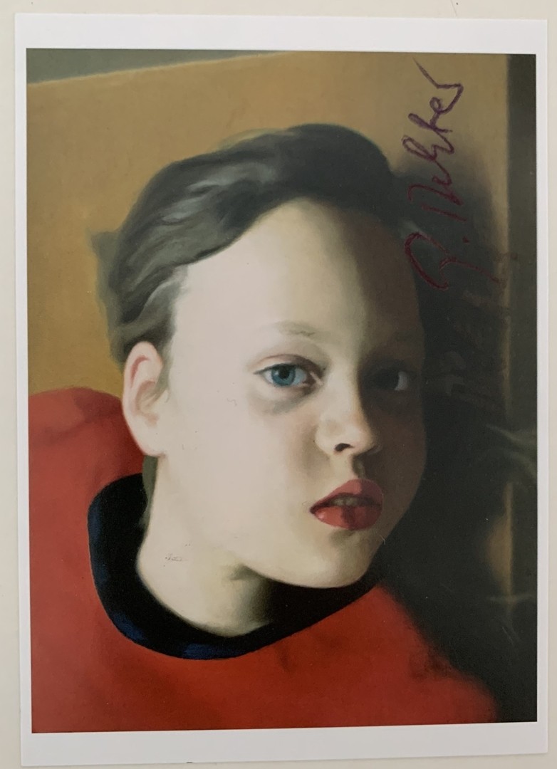 Richter, Gerhard (geboren 1932) Betty, Künstlerpostkarte. Handsignierte Postkarte mit Künstler Widmung, nach dem Gemälde von 1977.