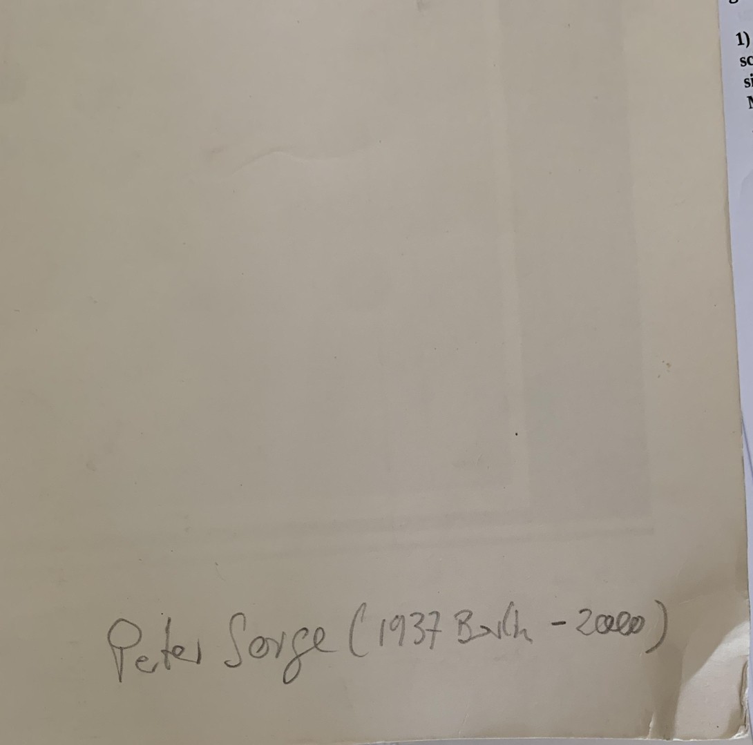 Rückseitig mit Bleistift beschriftet "Peter Sorge (1937 Bath - 2000)" und "Nr. 165-3".