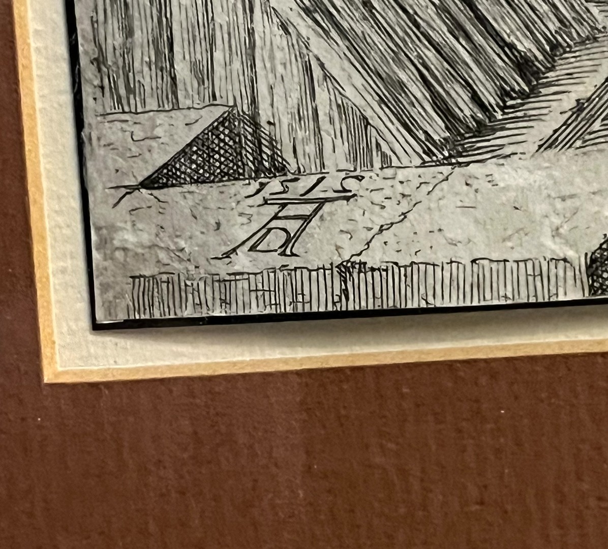 Druckplatte 14,1 x 11,2 cm, hinter Glas gerahmt 34 x 28 cm.