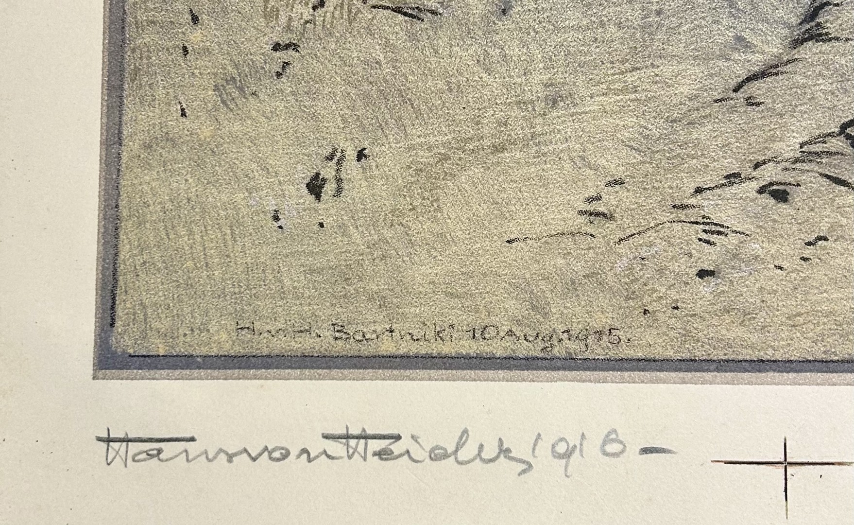"Hans von Heider war 1915 als Kriegsmaler in Russland und Polen und dokumentierte im heimischen Auftrag das Geschehen heroisierend mit Farblithographien in Mappenwerken wie 1916 »Das Kampfgelände des Württ. Infanterie=Regiments Kaiser Friedrich Nr. 125 bei der Offensive in Polen Juli und August 1915. Originalsteinzeichnungen nach Skizzen im Felde von Hans von Heider Maler, Kgl. Professor Bayr. Oberleutnant D.L. A.D. im Ers.-Bat. Inf.-Reg 125« (Impressum: »Dieses Werk wurde im Auftrage des Ersatz=Batl., Infanterie=Regiments 125 in der graphischen Abteilung der Königl. Kunstgewerbeschule Stuttgart in 125 handschriftlich nummerierten Exemplaren hergestellt. Der Steindruck erfolgte durch Alfons Himmelsbach«). Von Heider, der an der Münchner Akademie studiert hatte, war von 1905 bis 1937 Professor und Leiter der keramischen Abteilung an den Staatlichen Lehr- und Versuchswerkstätten Stuttgart (ab 1913 Kunstgewerbeschule Stuttgart)." Homepage der Staatsgalerie Stuttgart