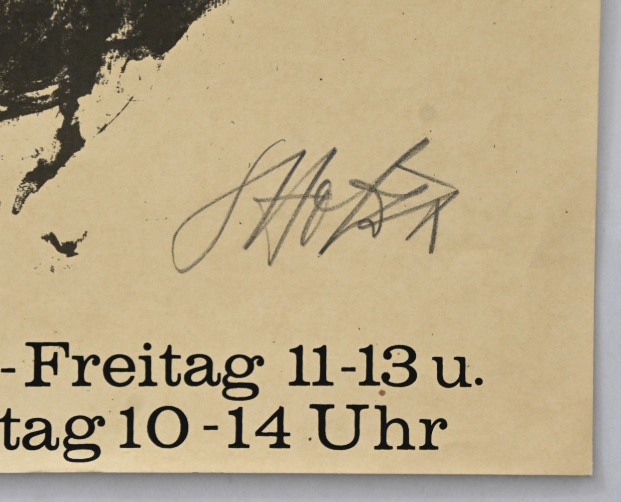 DIX Otto (1891 Untermhaus/Gera - 1969 Singen am Hohentwiel) Selbstportrait, Plakat der Galerie Stuckert, 1968, rechts unten signiert, 41x29,5cm *Dix absolvierte eine Lehre als Dekorationsmaler und ein Studium an der Kunstgewerbeschule in Dresden. Nach Ende des Ersten Weltkriegs gründet er gemeinsam mit Conrad Felixmüller die ''Gruppe 1919'' der Dresdner-Secession. Ab 1927 hat er eine Professur an der Kunstakademie in Dresden inne bis zur Entlassung aus der Lehrtätigkeit durch die Nationalsozialisten, die auch seine Werke als ''entartete Kunst'' diffamieren. Otto Dix' Werk ist von stilistischer Vielfalt geprägt, am bekanntesten sind die Werke, die der Neuen Sachlichkeit zugerechnet werden.*