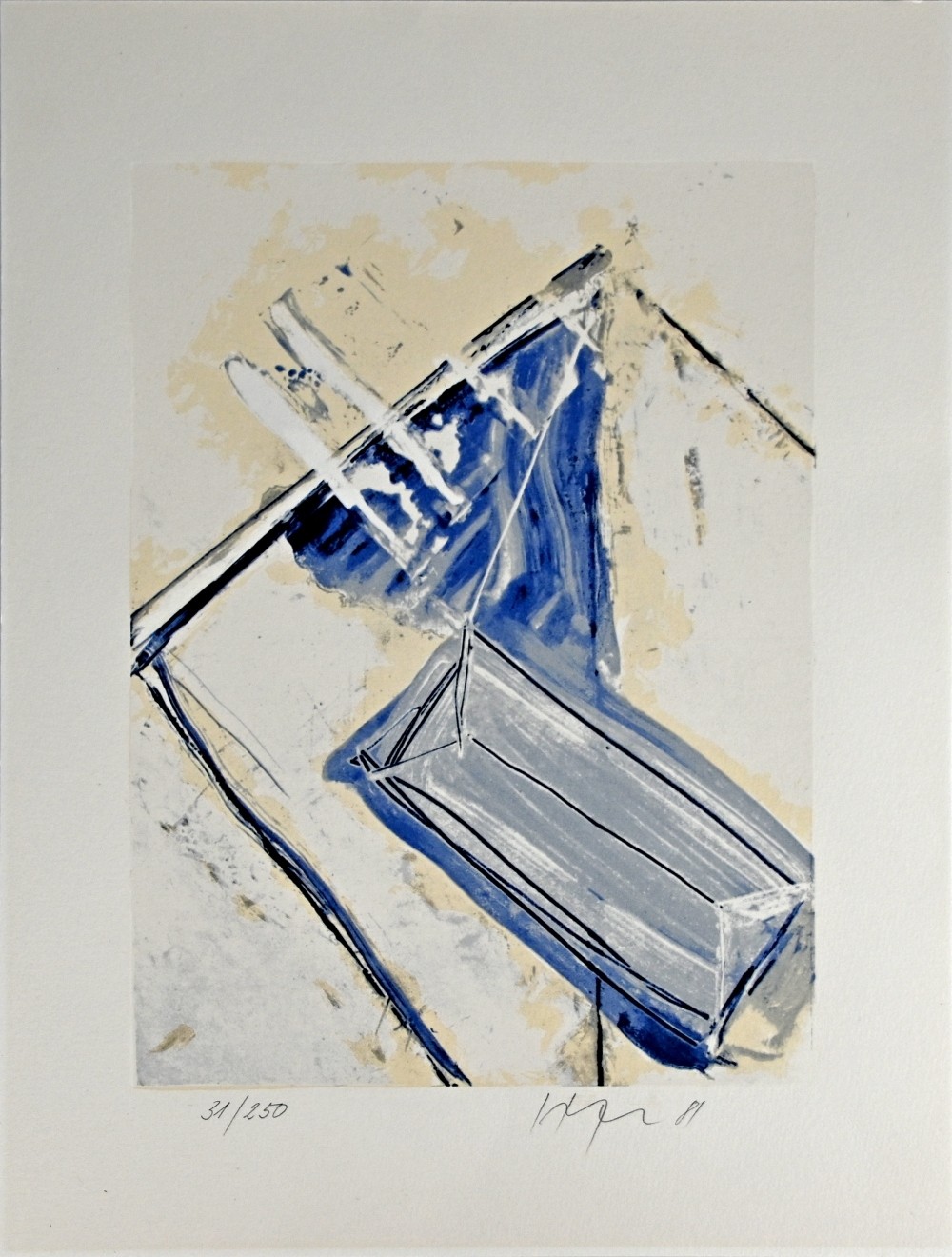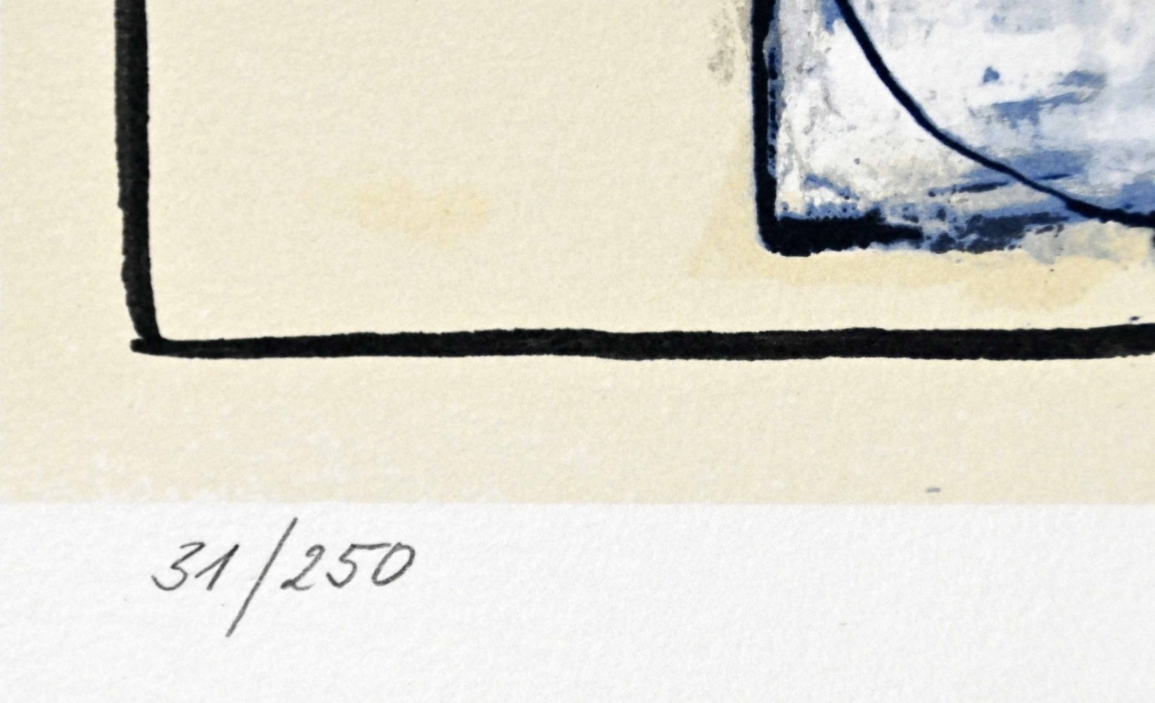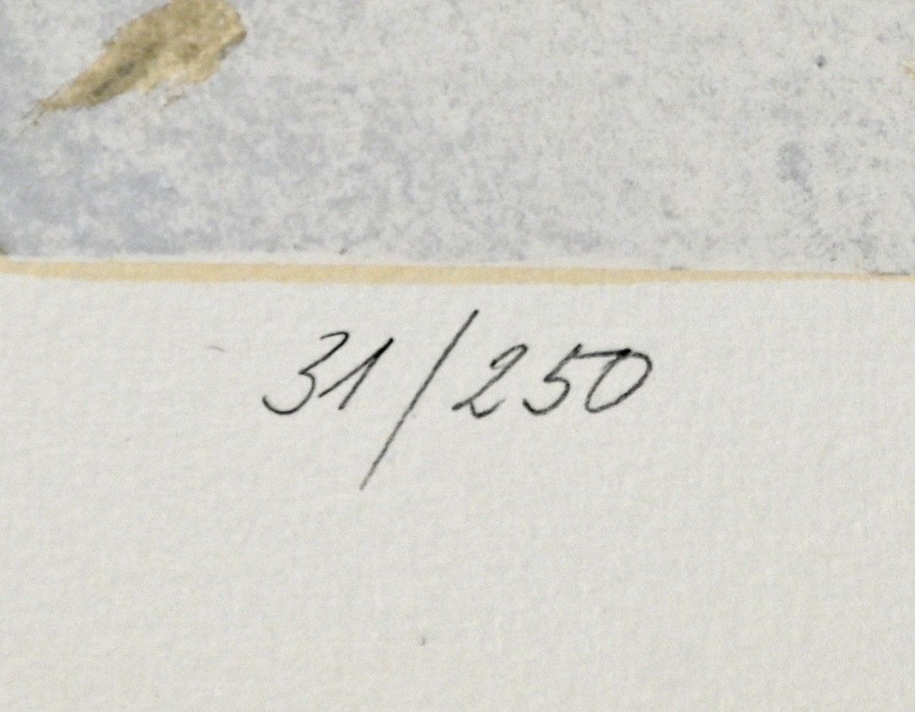 HOFSCHEN Edgar (1941 Tapiau, Ostpreußen/Russland - 2016 Wuppertal) 2 Graphiken: ''Abstrakte Komposition'', Farblithographie auf Velin, rechts unten signiert, (19)81 datiert, links unten nummeriert 31/250, 29,5x21,5cm; ''Abstrakte Komposition'' mit Kreisen, Farblithographie auf Velin, rechts unten signiert, (19)81 datiert, links unten nummeriert 31/250, 29,5x21cm (Abb.) *Hofschen studierte Pädagogik in Wuppertal, Kunstgeschichte und Philosophie in Köln und nahm 1972 ein Studium der Malerei an der Kunstakademie Düsseldorf auf. 1977 nahm Hofschen an der documenta 6 in Kassel teil. Sein künstlerisches Werk wird der analytischen Malerei zugerechnet, einer reduktionistischen Variante der abstrakt, ungegenständlichen Malerei, die darauf abzielt, allein das Material eines Bildwerks, also etwa Leinwand und Farbe bzw. Farbauftrag, für sich sprechen zu lassen, ohne etwas anderes abbilden oder ausdrücken zu wollen.*