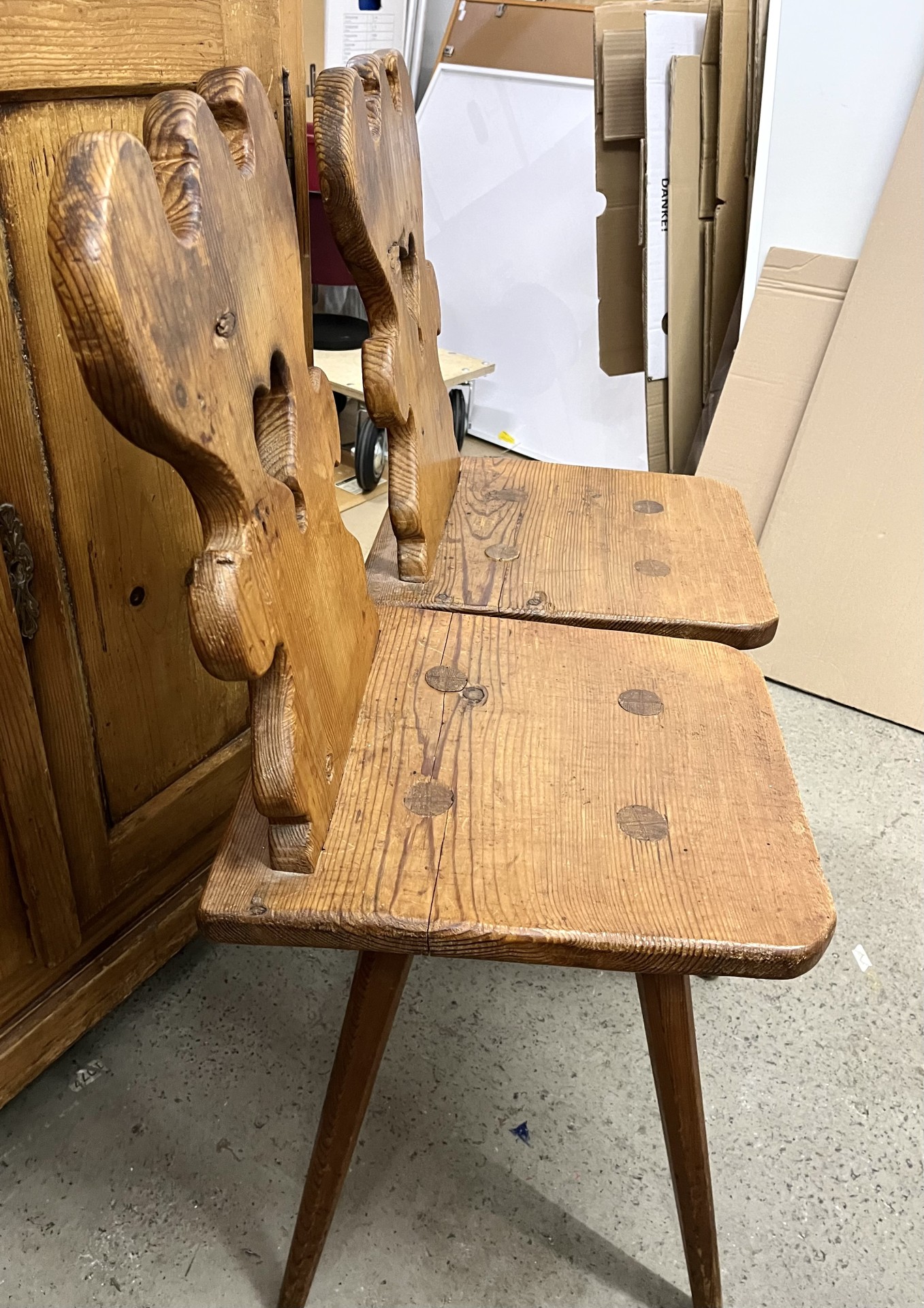 Los 113 - Bauernhausstühle, zwei Stück, Weichholz. Ausgelassenes Herz in der Rückenlehne.