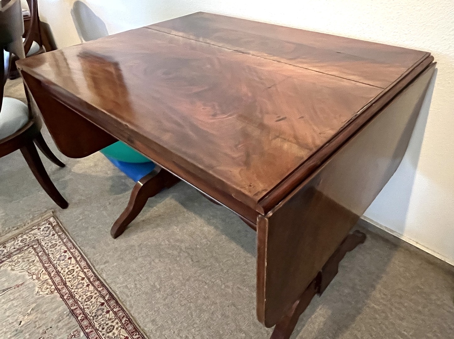 Los 114 - Biedermeier-Tisch mit zwei klappbaren Seitenteilen, Nussbaum, Anfang 19. Jahrhundert.