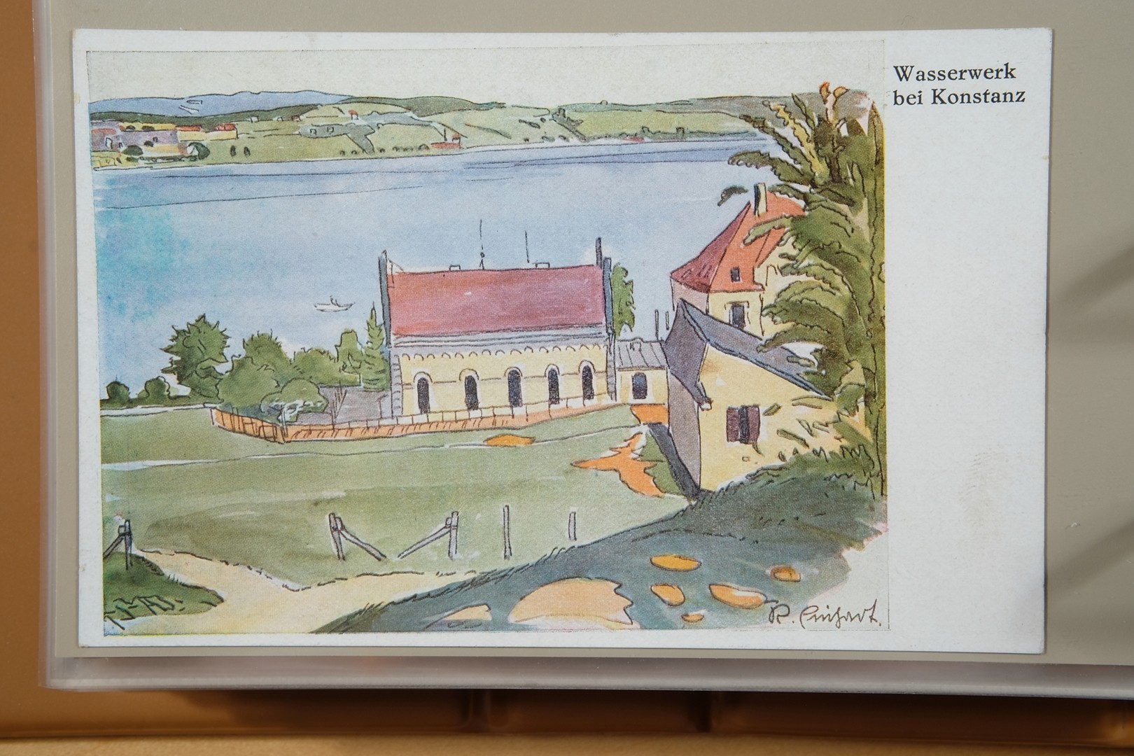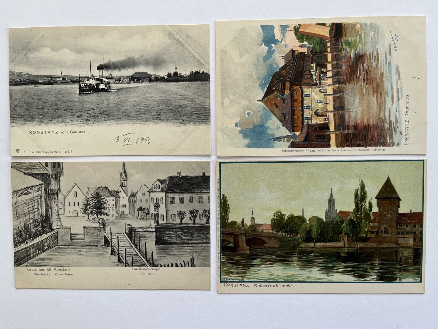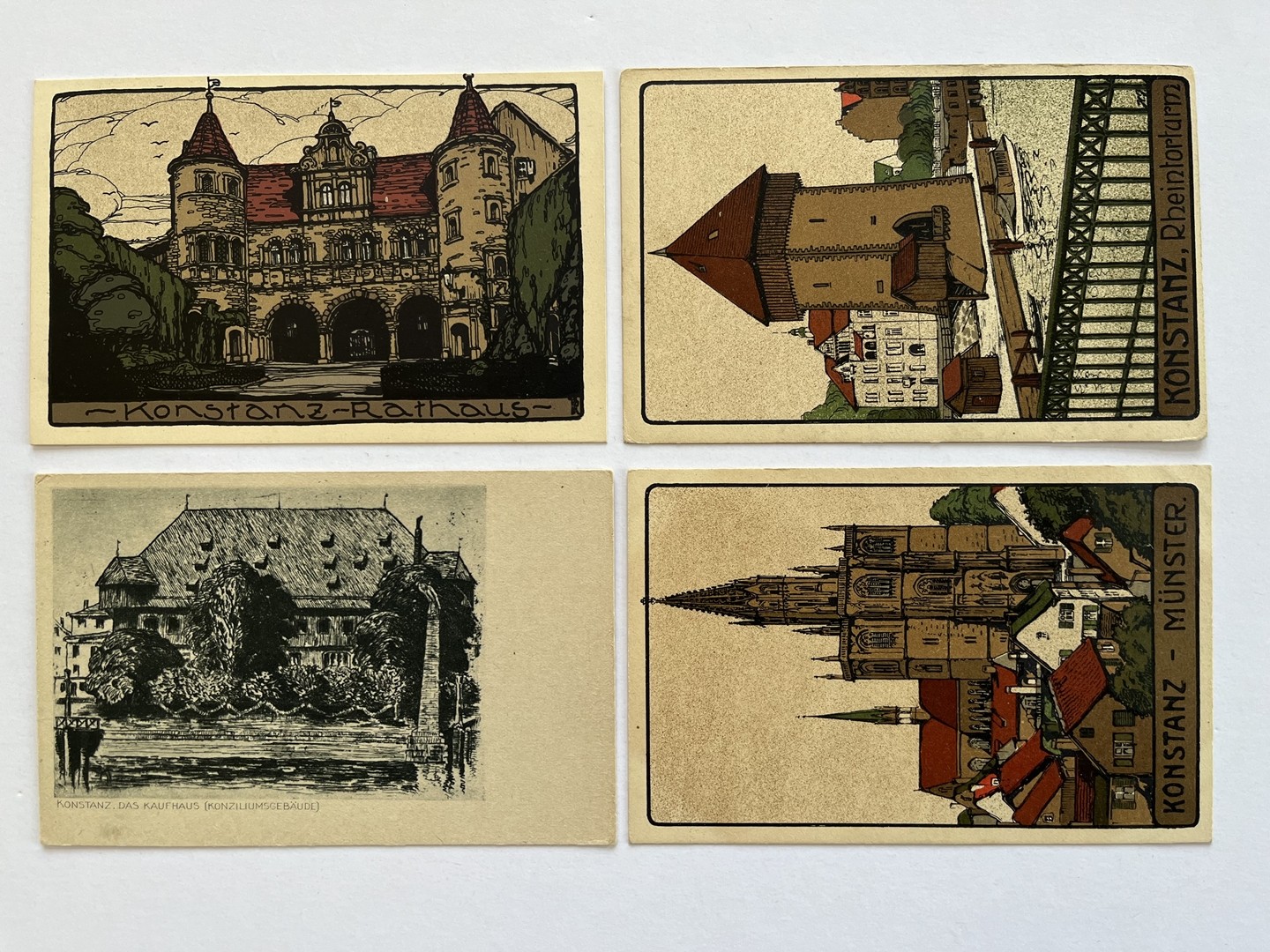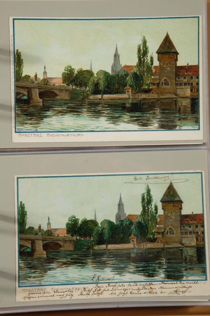 124 Postkarten Konstanz, Sammelschwerpunkt 'Radierungen & Farblithografien', Jahrhundertwende