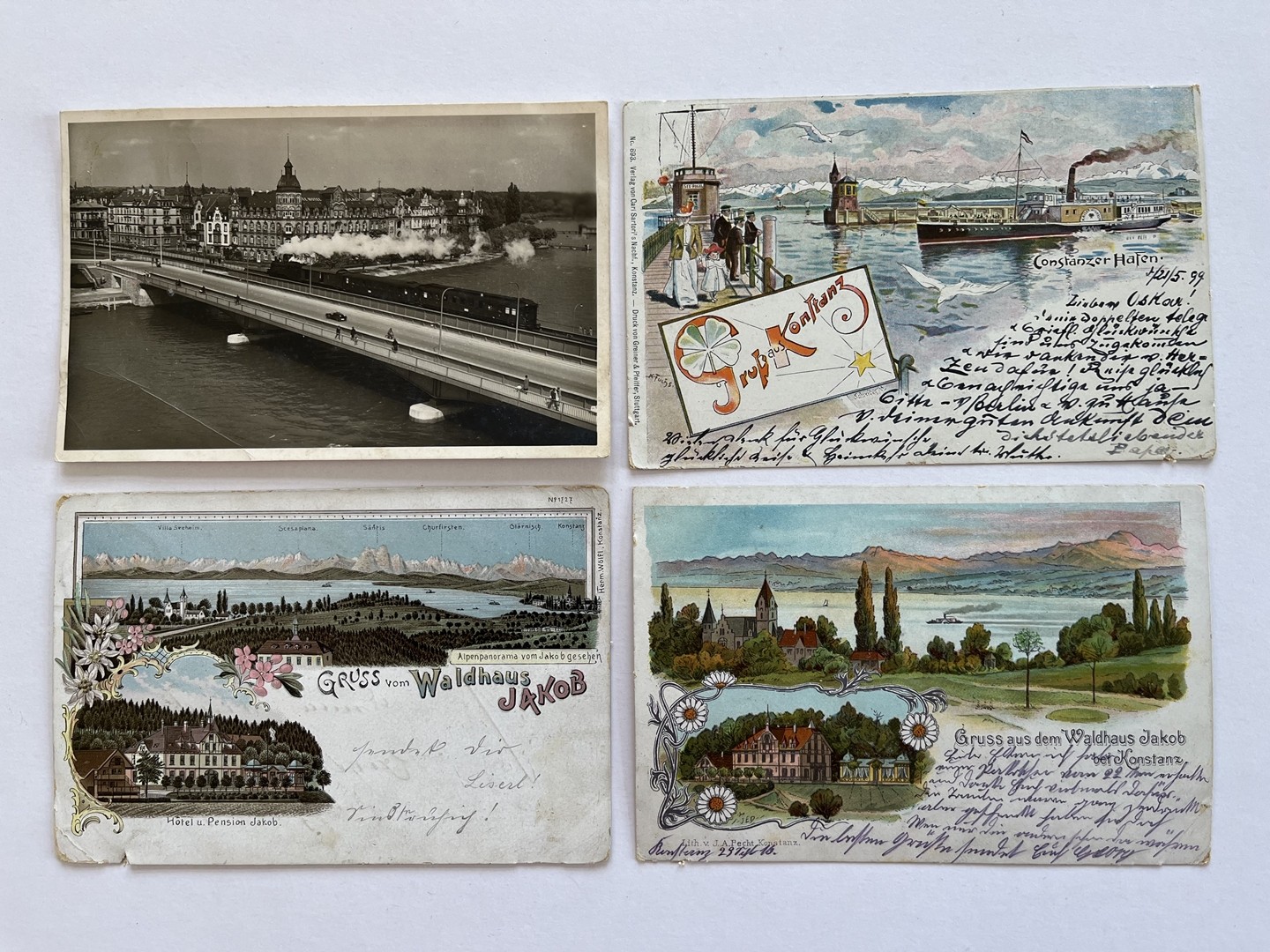 159 Postkarten Konstanz, Sammelschwerpunkt 'Stadt- und Uferansichten sowie Hotels, Fernsicht auf den See', ab 1900 aufwärts