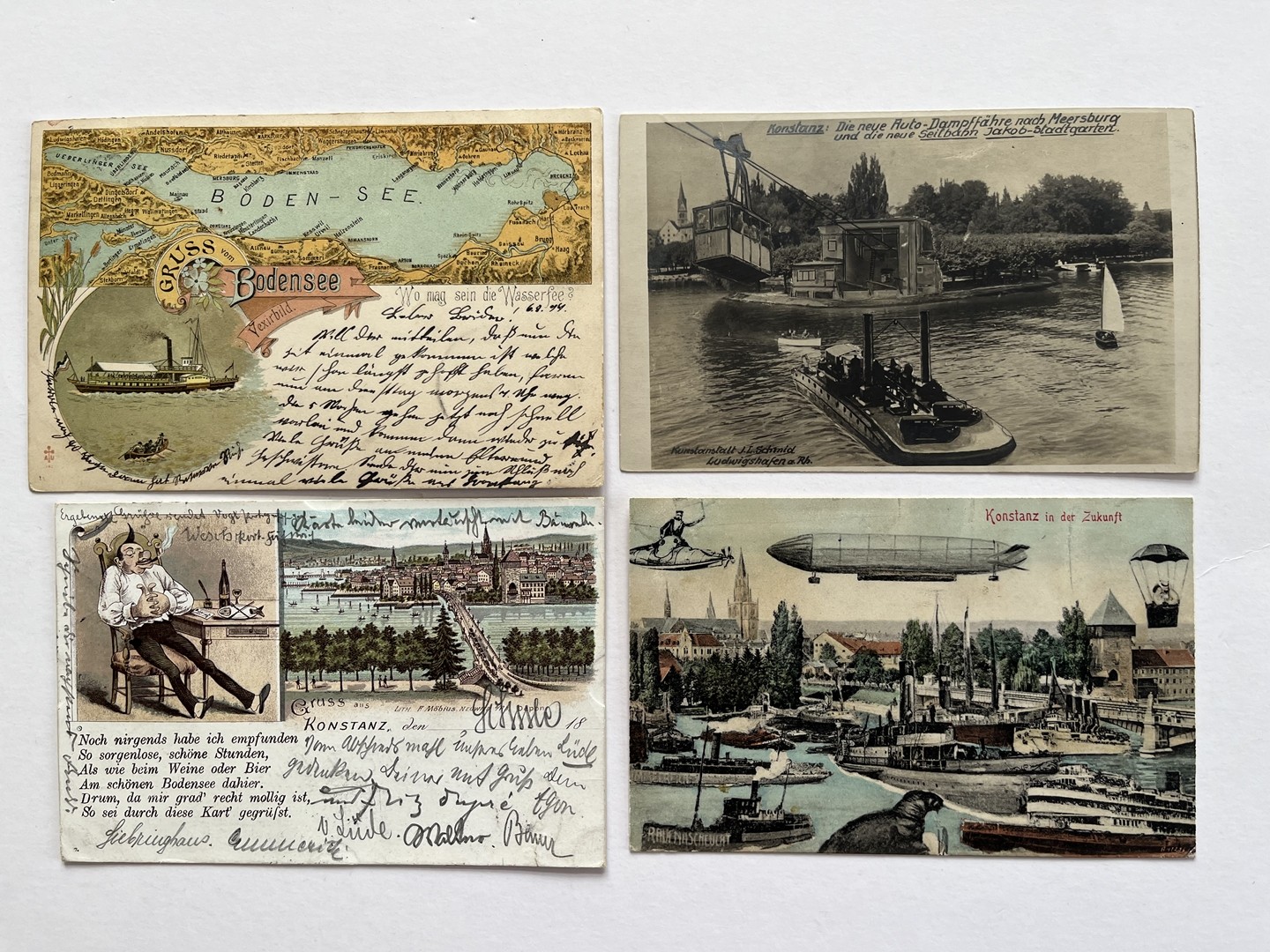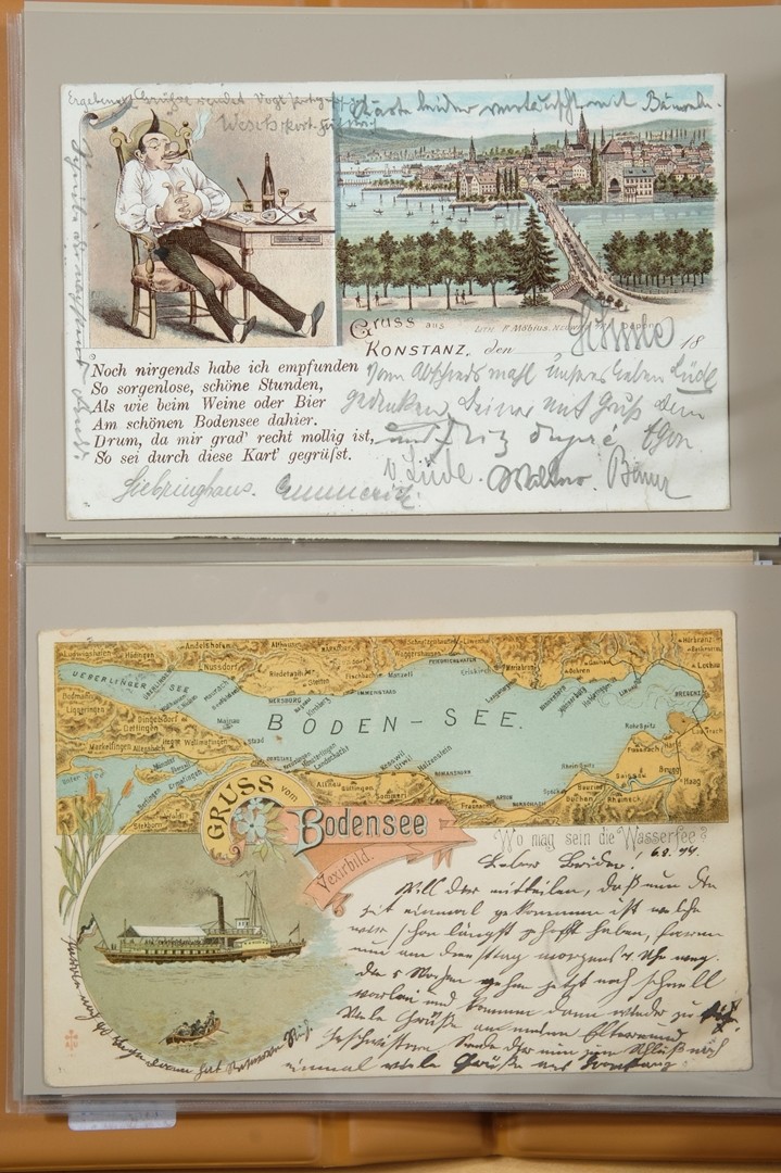 218 Postkarten Konstanz, Sammelschwerpunkt 'Spruchkarten, Gedichte, vieles zum Schmunzeln', Jahrhundertwende.