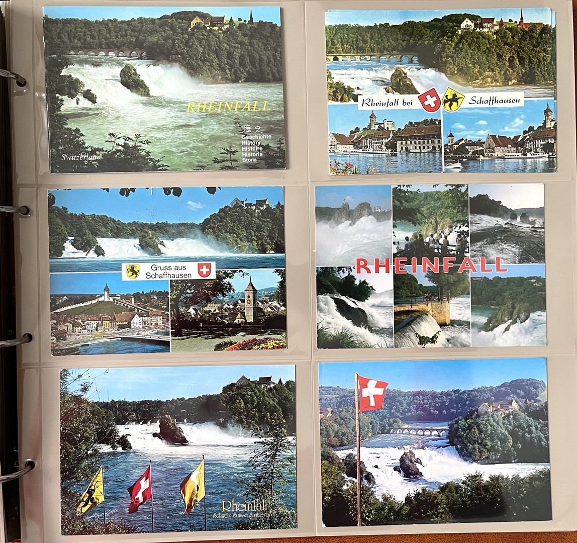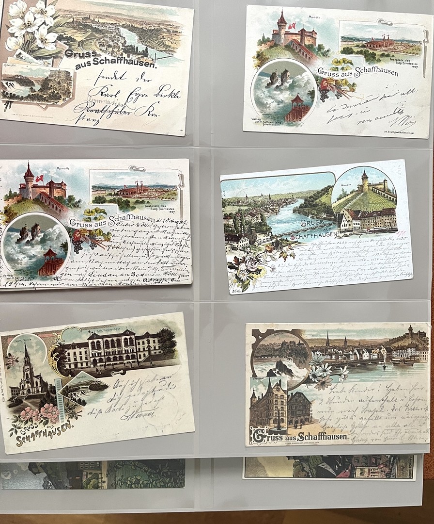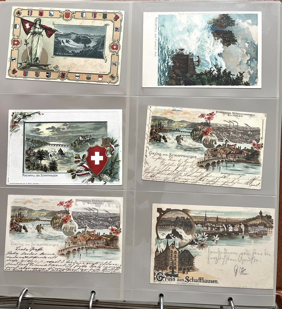 Los 74 - Schaffhausen und Rheinfall, ca. 452 Postkarten, viele um 1900. Viele unbeschrieben, viele mit Grußbotschaften und gelaufen. Besonders reizvoll ist diese einmalige zeitgeschichtliche Dokumentation über den Rheinfall und Schaffhausen, da neben den vielen "antiken" Karten, die Sammlung bis in die neuere Zeit reicht. Der Schwerpunkt liegt aber klar bei den älteren Werken.