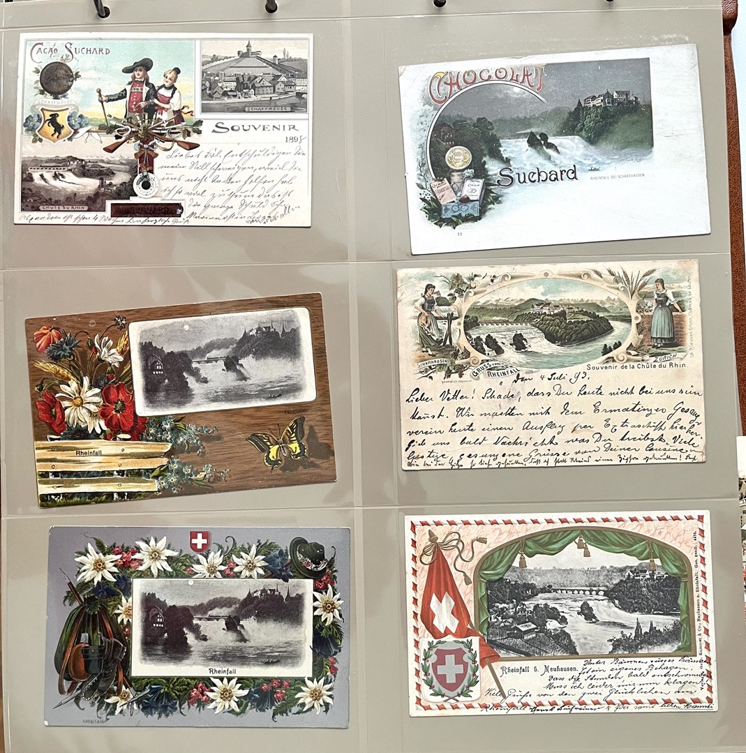 Schaffhausen und Rheinfall, ca. 452 Postkarten, viele um 1900. Viele unbeschrieben, viele mit Grußbotschaften und gelaufen. Besonders reizvoll ist diese einmalige zeitgeschichtliche Dokumentation über den Rheinfall und Schaffhausen, da neben den vielen "antiken" Karten, die Sammlung bis in die neuere Zeit reicht. Der Schwerpunkt liegt aber klar bei den älteren Werken.